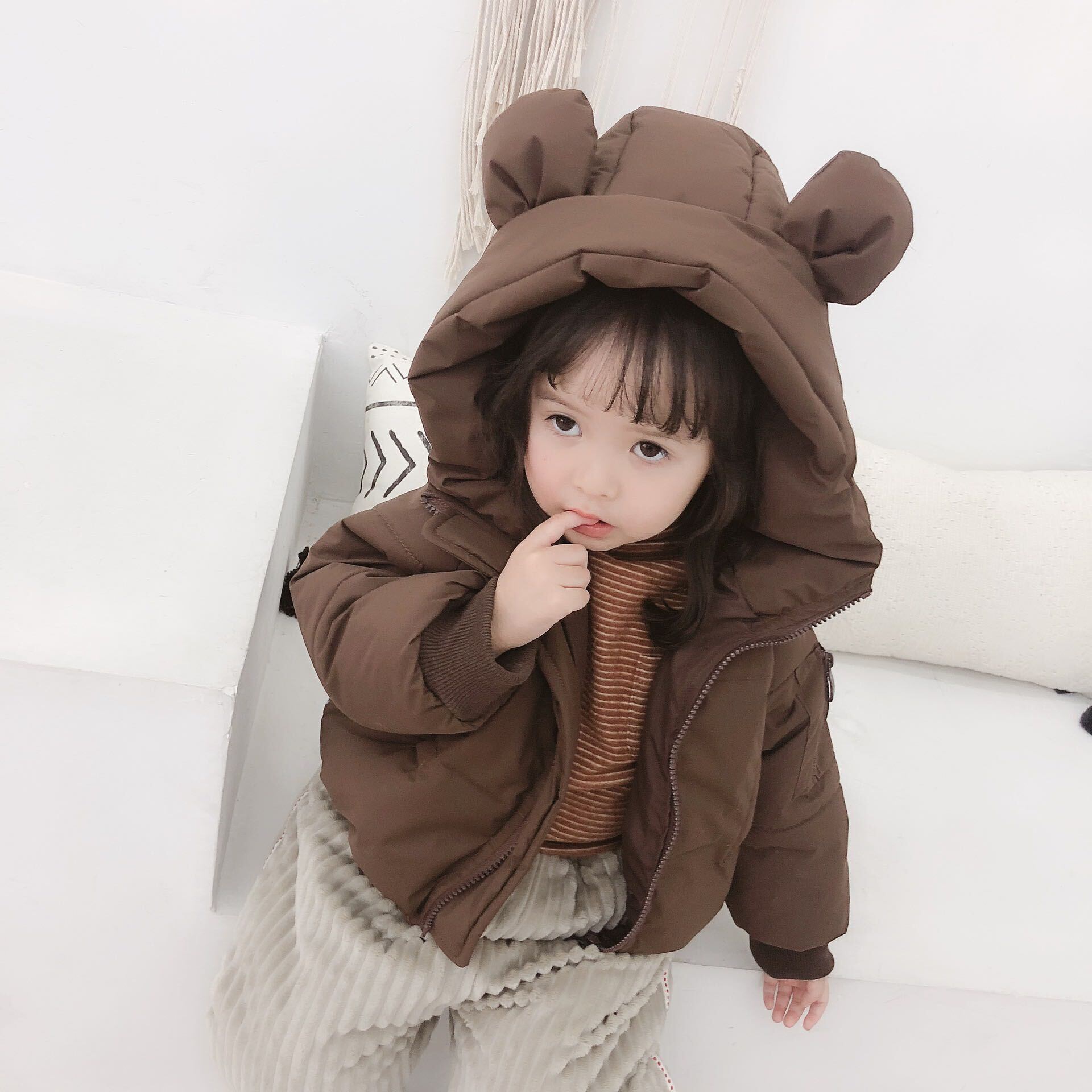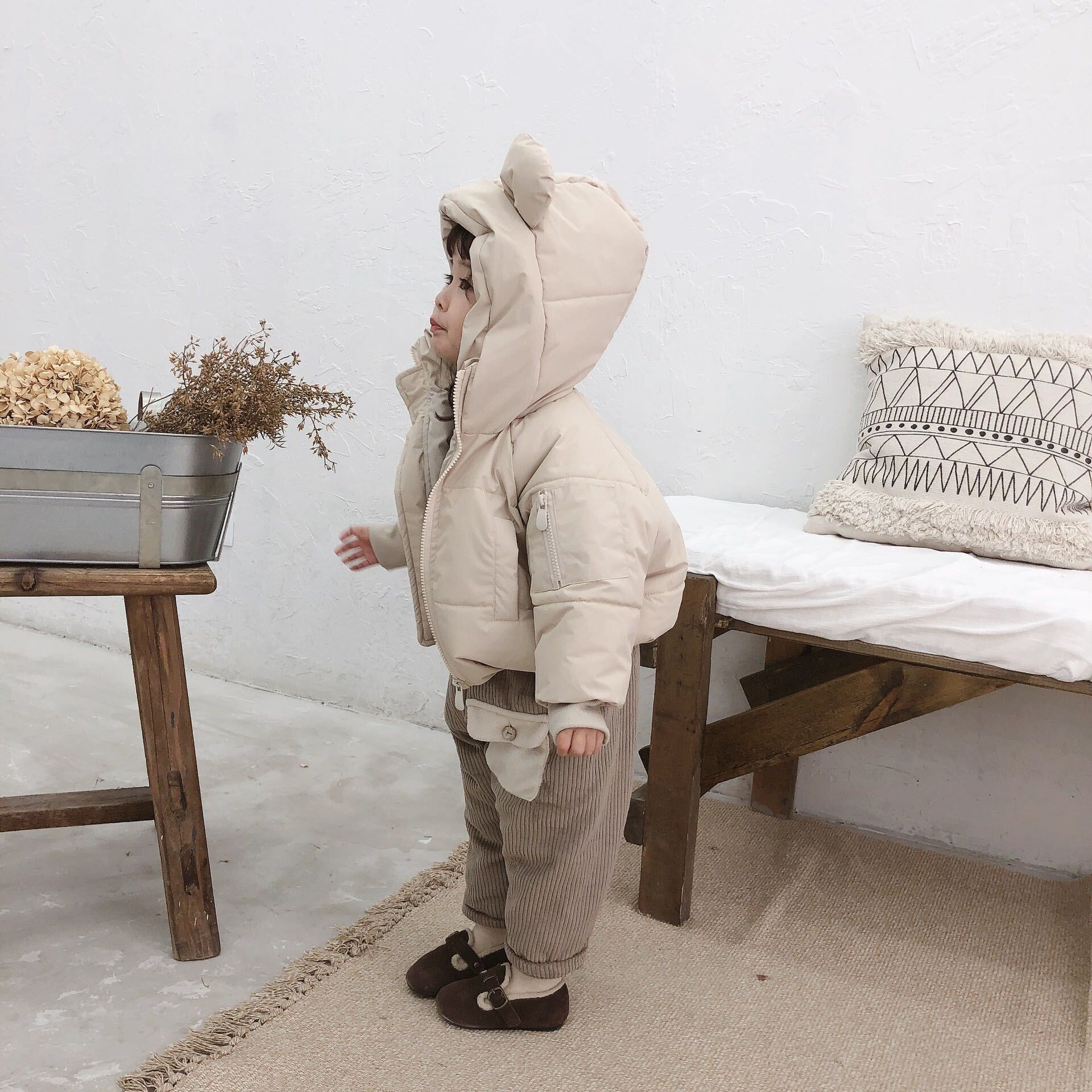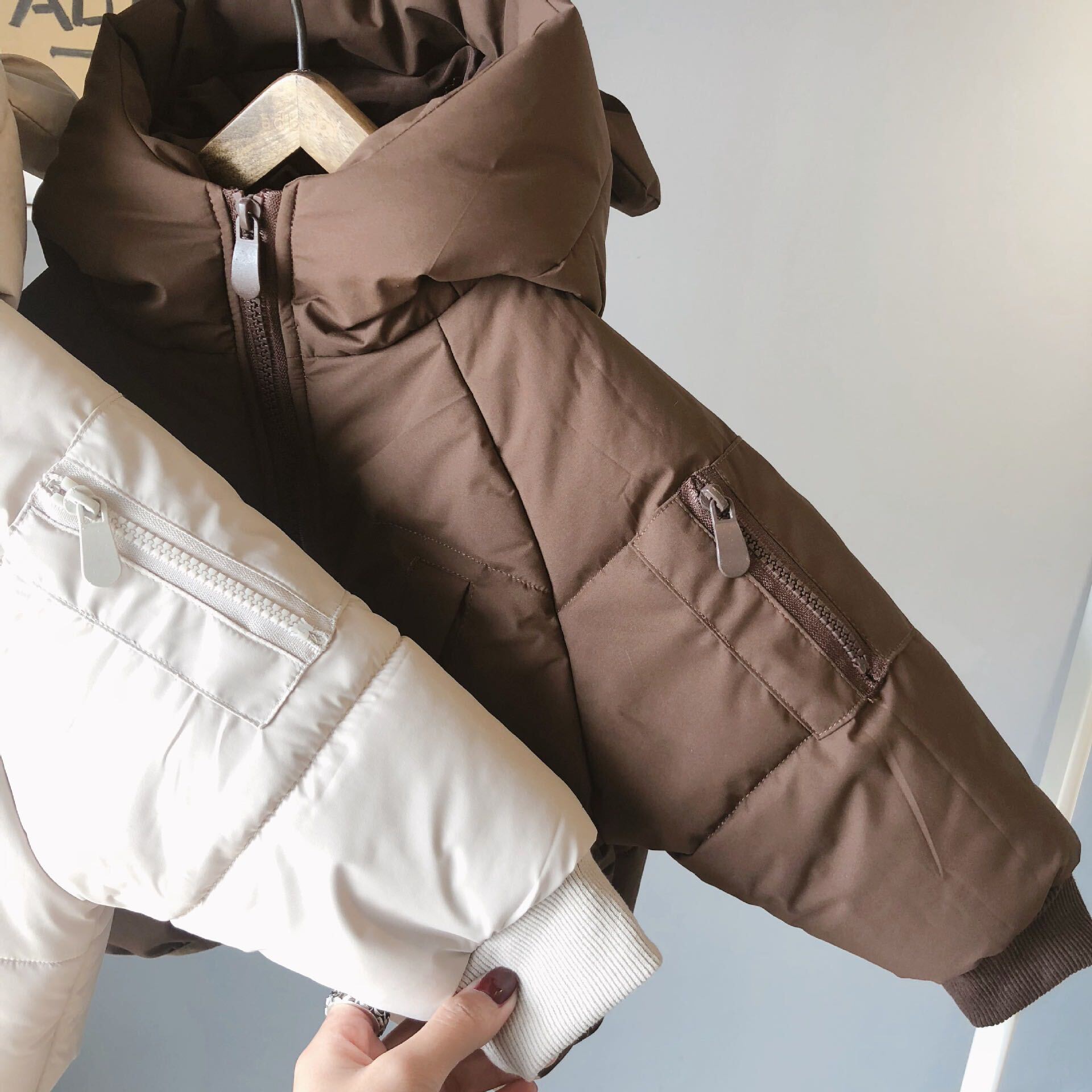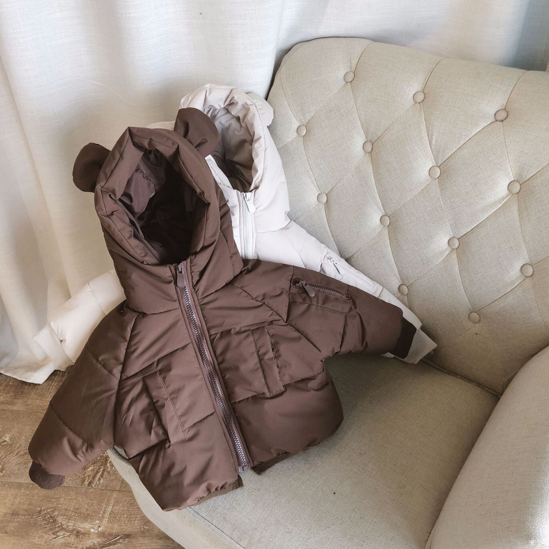 色:Ceeカラーのイヤーパッド付きジャケット,ベージュの綿パッド