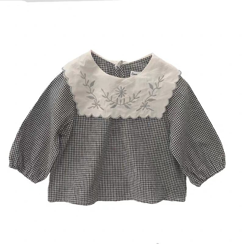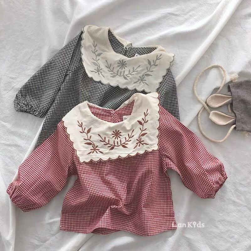 スプリングFlowerデザイン シャツ 格子柄 レッド 刺繍 春物 フラワーデザイン 4/24 mi0997899716579 | Sagittarius By Constellation -KIDS&BABY-