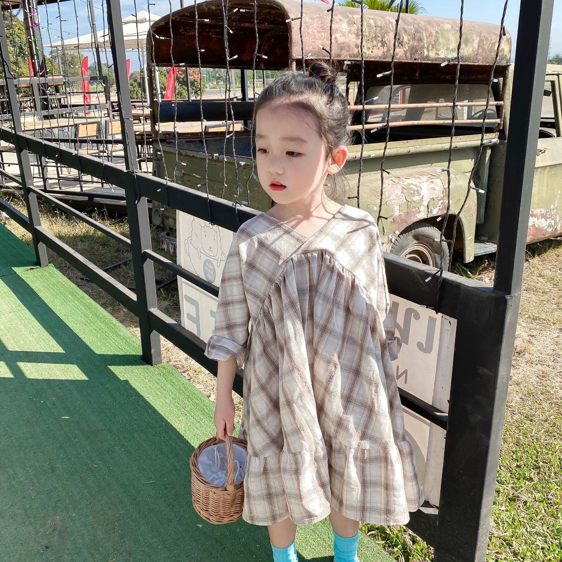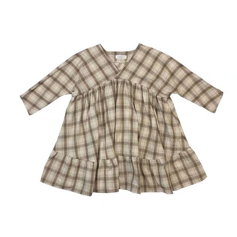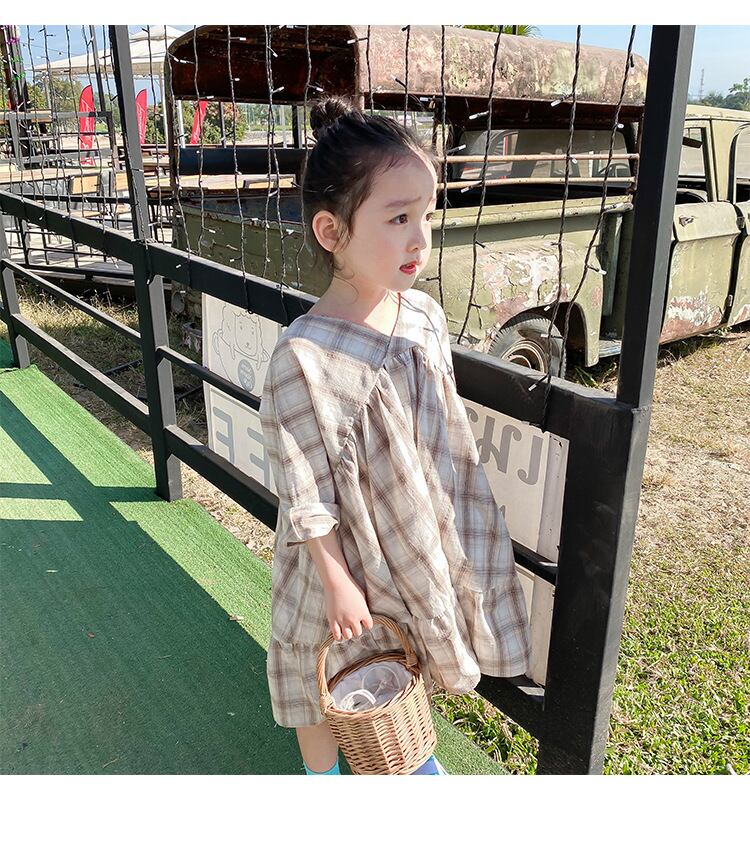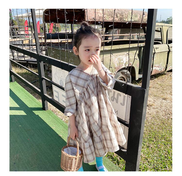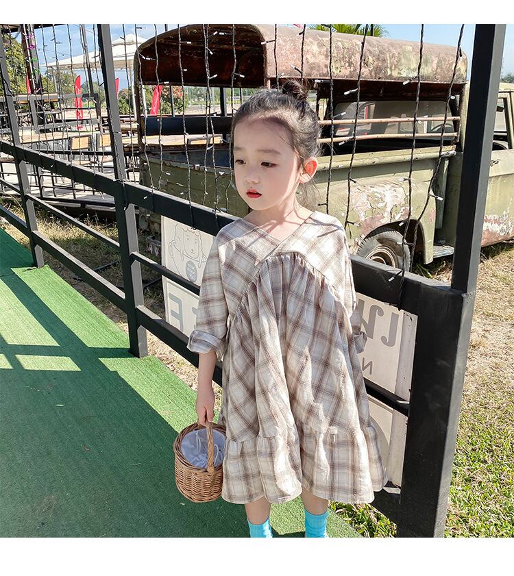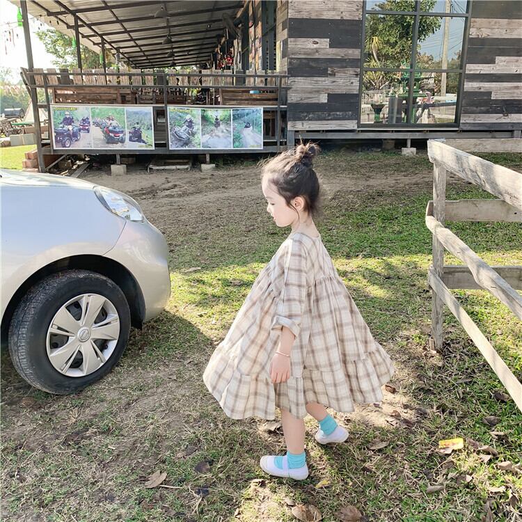 スプリング格子柄ドレス スタイルスタンダードスカート ロング コットン レトロ 春物 4/24 mi0957973308949