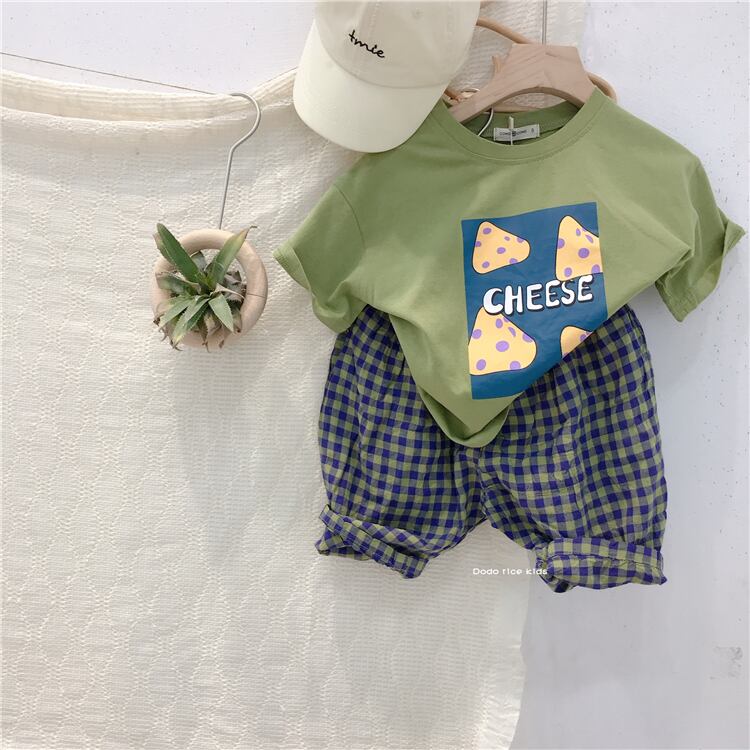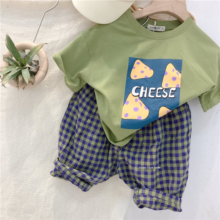 色:チーズT(緑),チーズT(グレー),チェック柄パンツ(ブルー&グリーン),チェック柄パンツ(ブラックアプリコット)