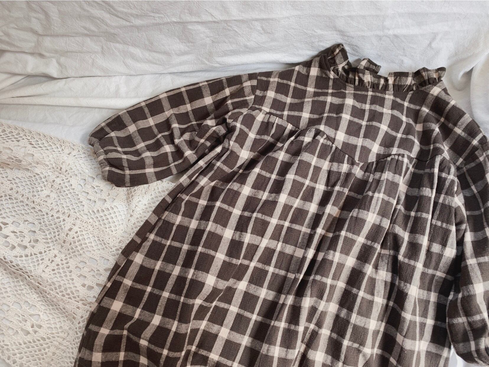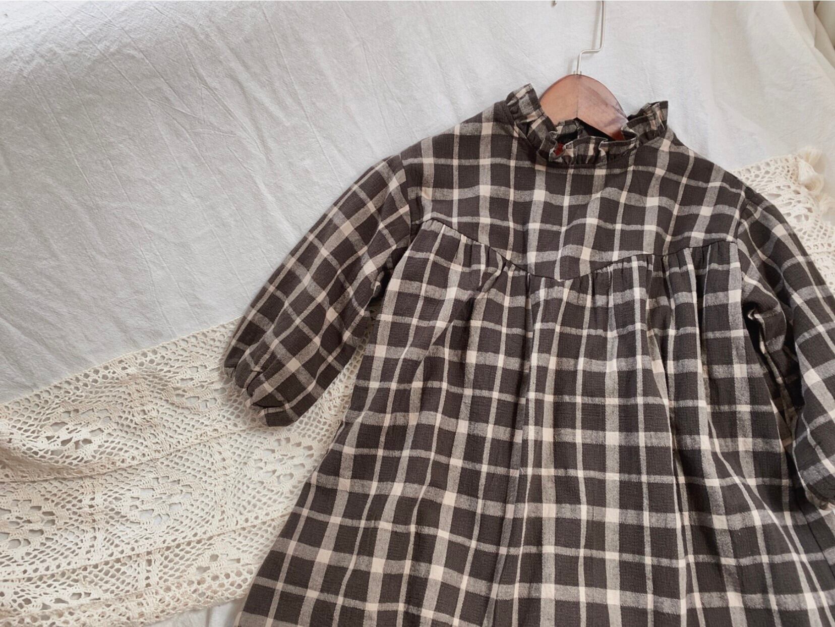 ウィンター格子柄ベルベットドレス コットン 冬物 4/24 mi097205246794