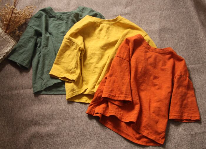 スプリングサマールーズソリッド カラーシャツ Tシャツ コットン 春物 夏物 ソリッドカラー 4/24 mi09116904573 | Sagittarius By Constellation -KIDS&BABY-