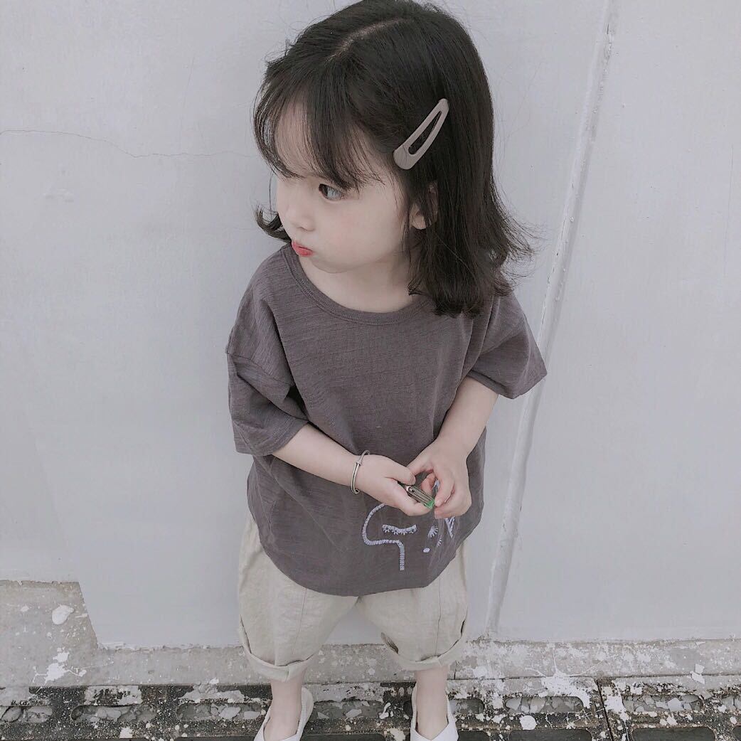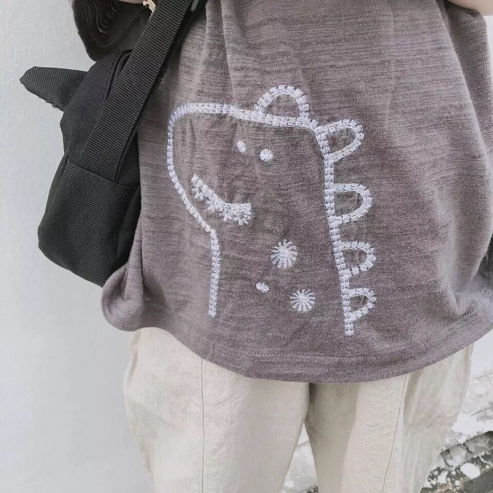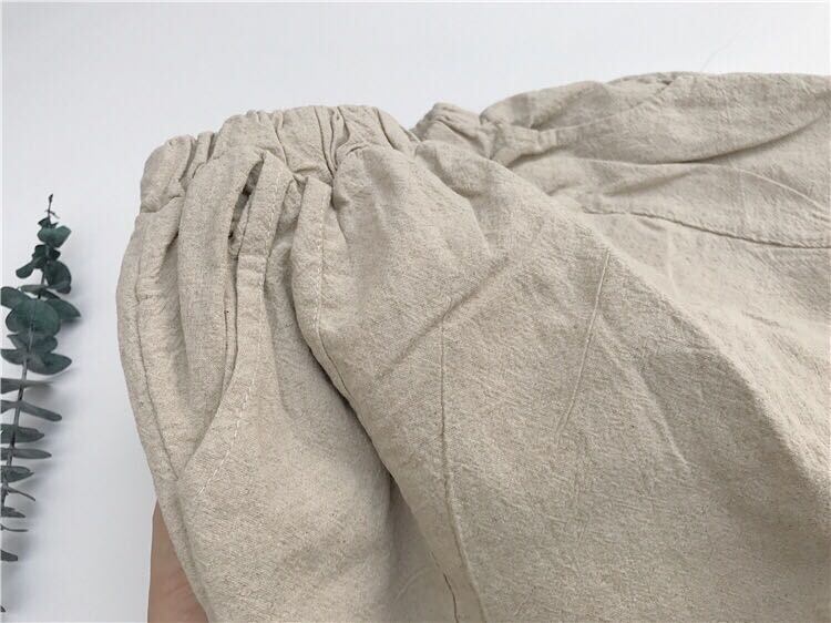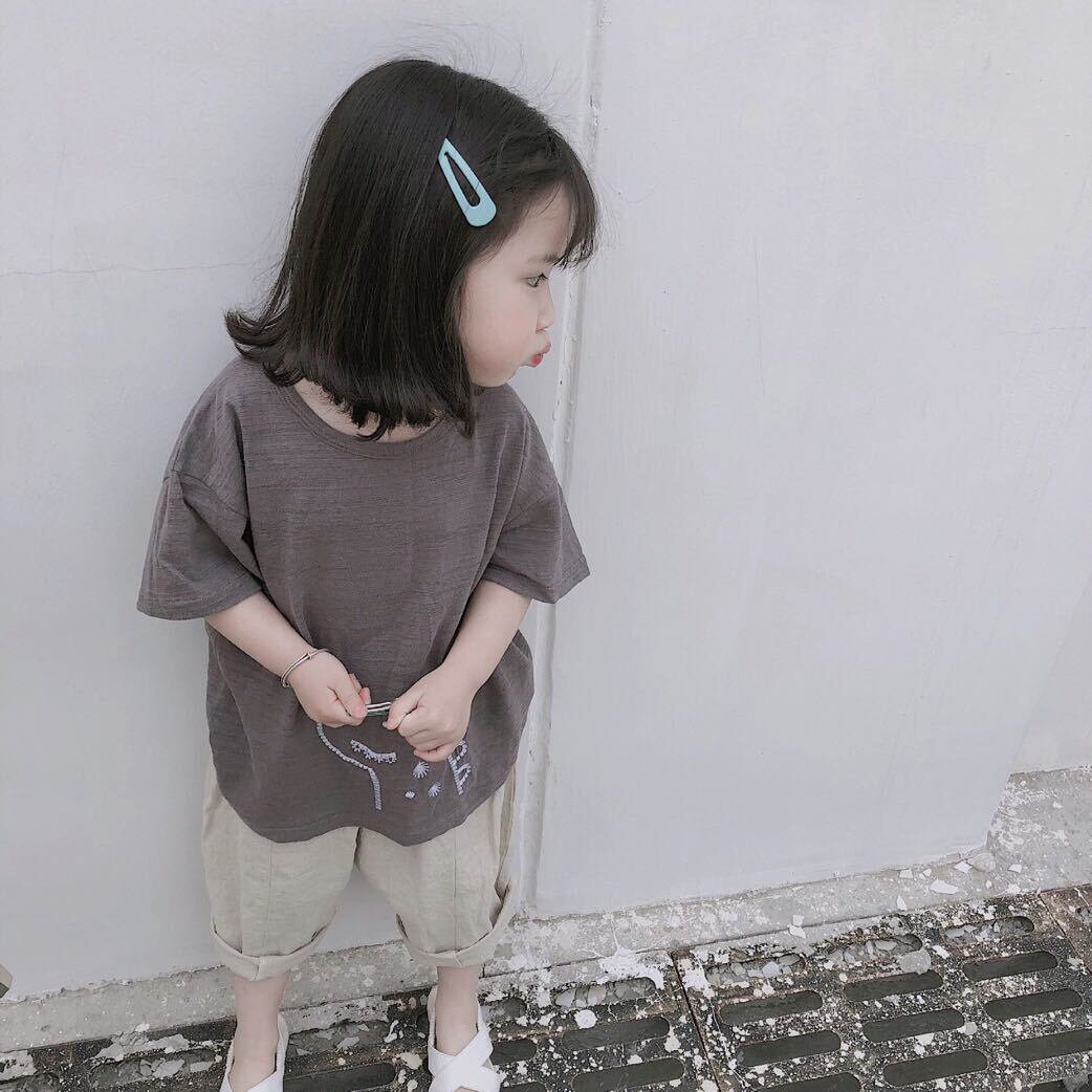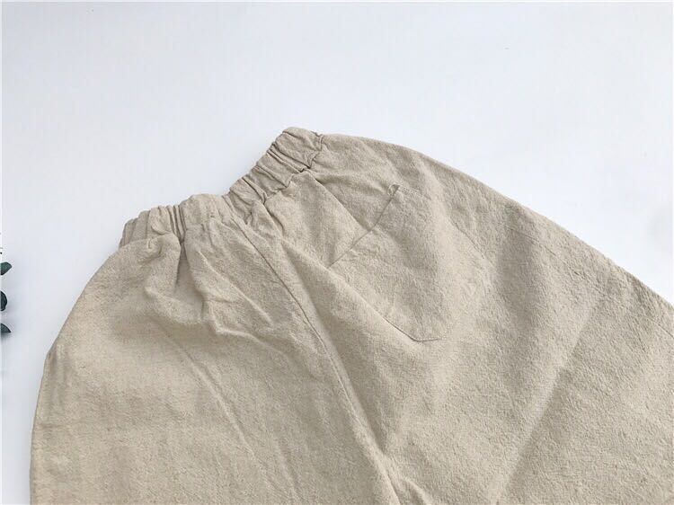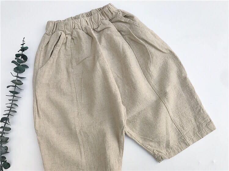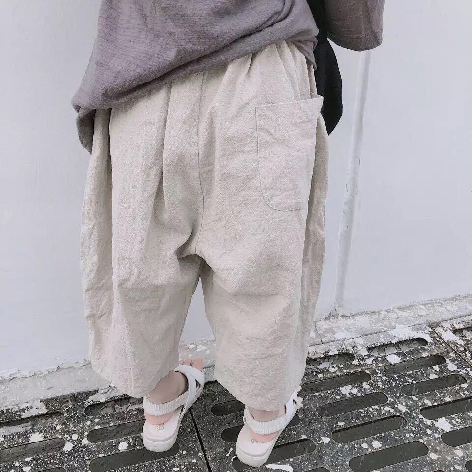 色:生リネン洗浄クロップドパンツ(大),子鹿刺繍T