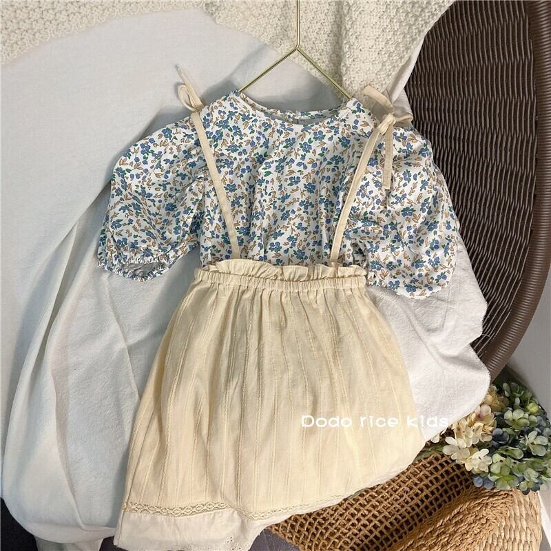 色:LCブルーフローラルブラウス(ワンピース),LCライスベージュサスペンダースカート(ワンピース)