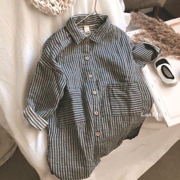 色:ストライプミドル丈シャツ(大),自分の子供が98を着る90フィット