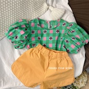 色:コントラストチェックシャツ(ワンピース),イエローピーチショーツ(ワンピース)
