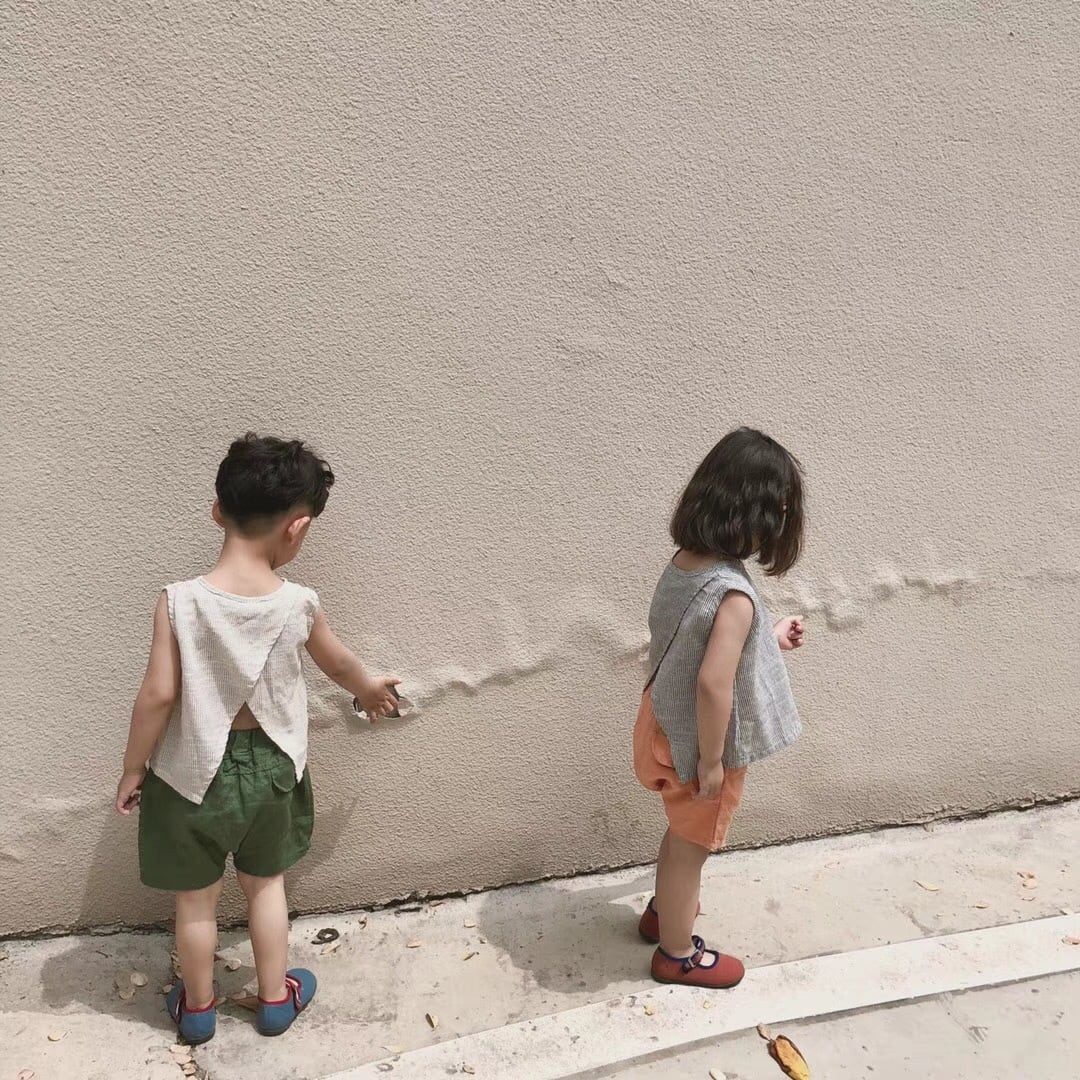 色:グレーベスト32016(2サイズ推奨),アプリコットベスト32016(2サイズ推奨),グリーンショーツ32031(推奨サイズ),オレンジのショートパンツ32031(ワンサイズをお勧めします)