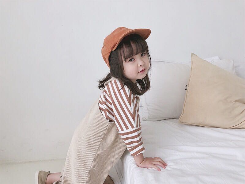 色:Ceeストライプボトムスシャツ,ベージュコーデュロイビブパンツ,ブラックストライプボトミングシャツ