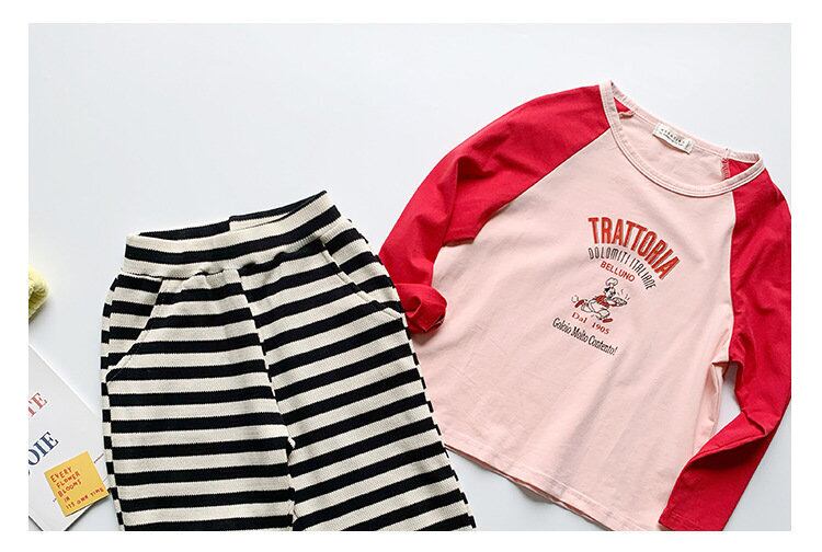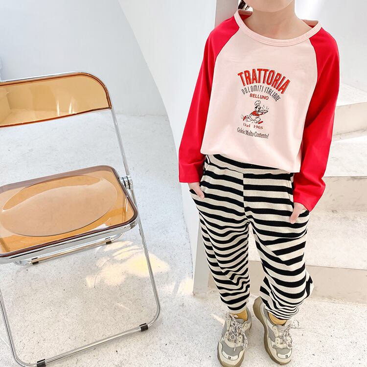 オータムスタイルカラーラウンドネックTシャツ ストライプニットパンツ ロング 秋物 Oネック 4/24 mi0990123208791 | Sagittarius By Constellation -KIDS&BABY-