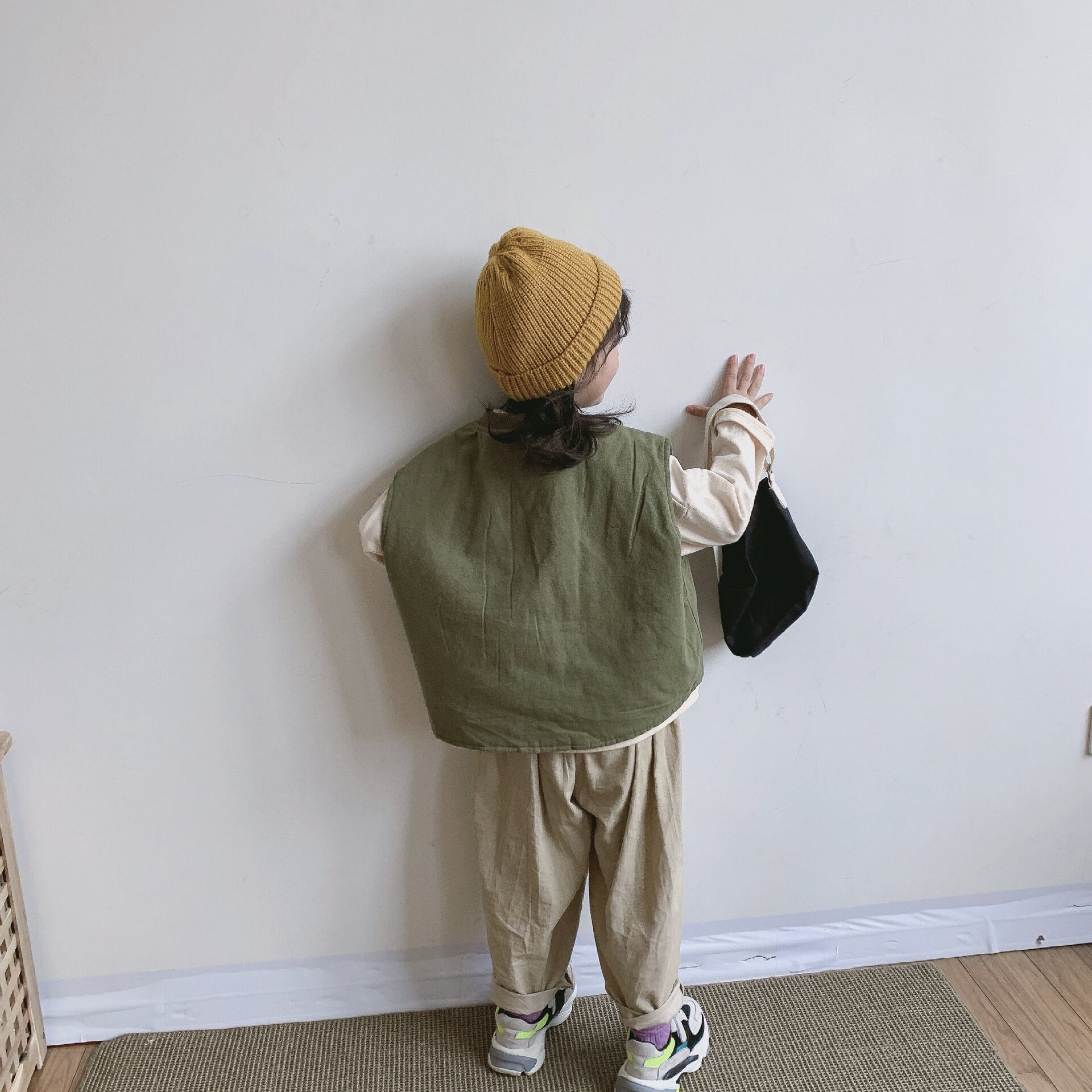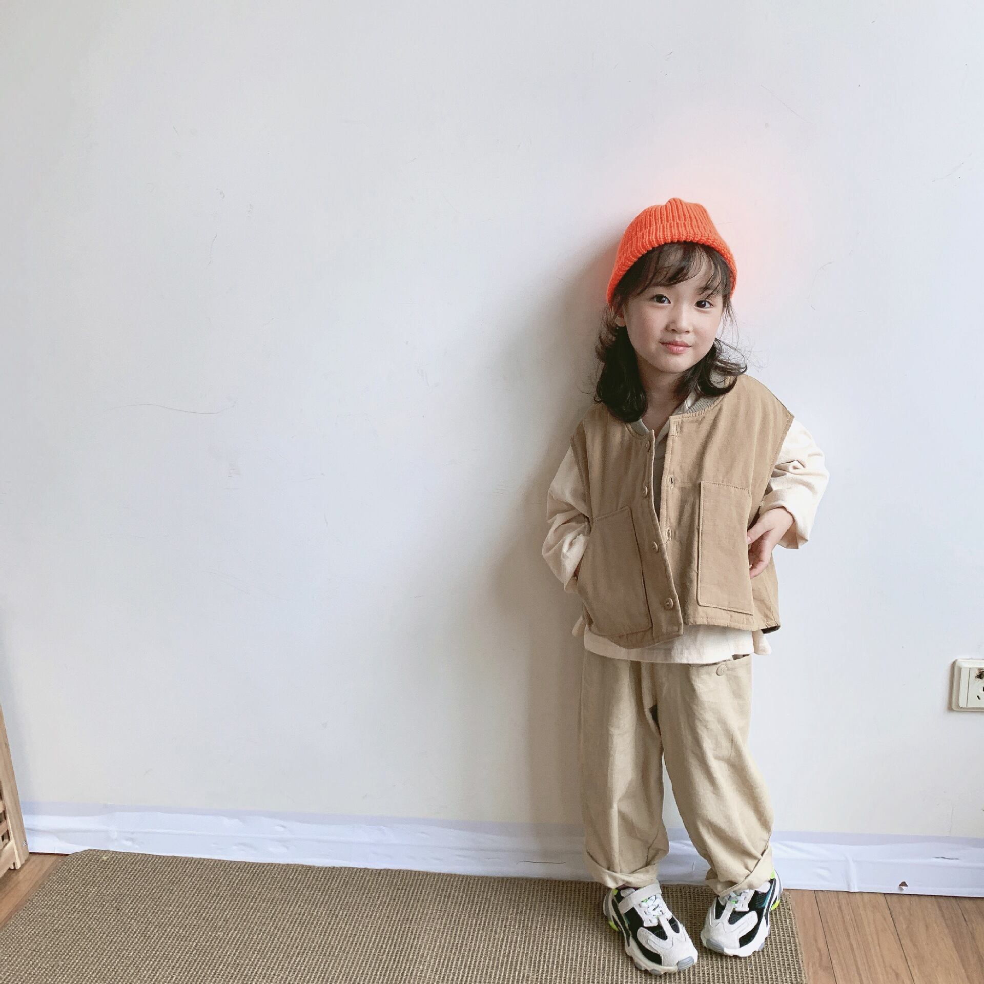 色:アーミーグリーンがやや短い,アプリコット-少し短く