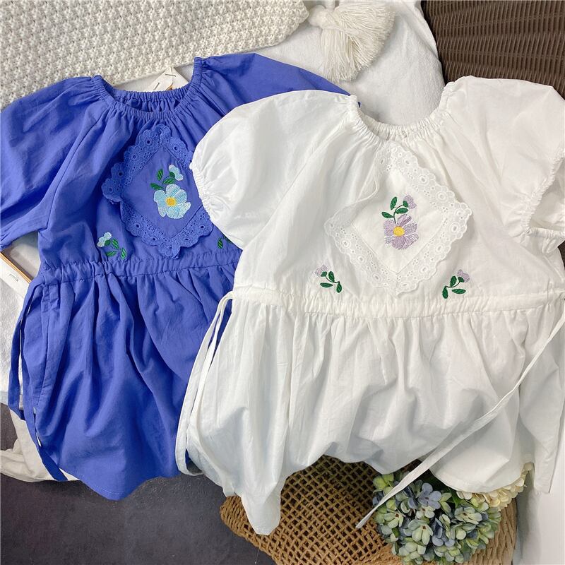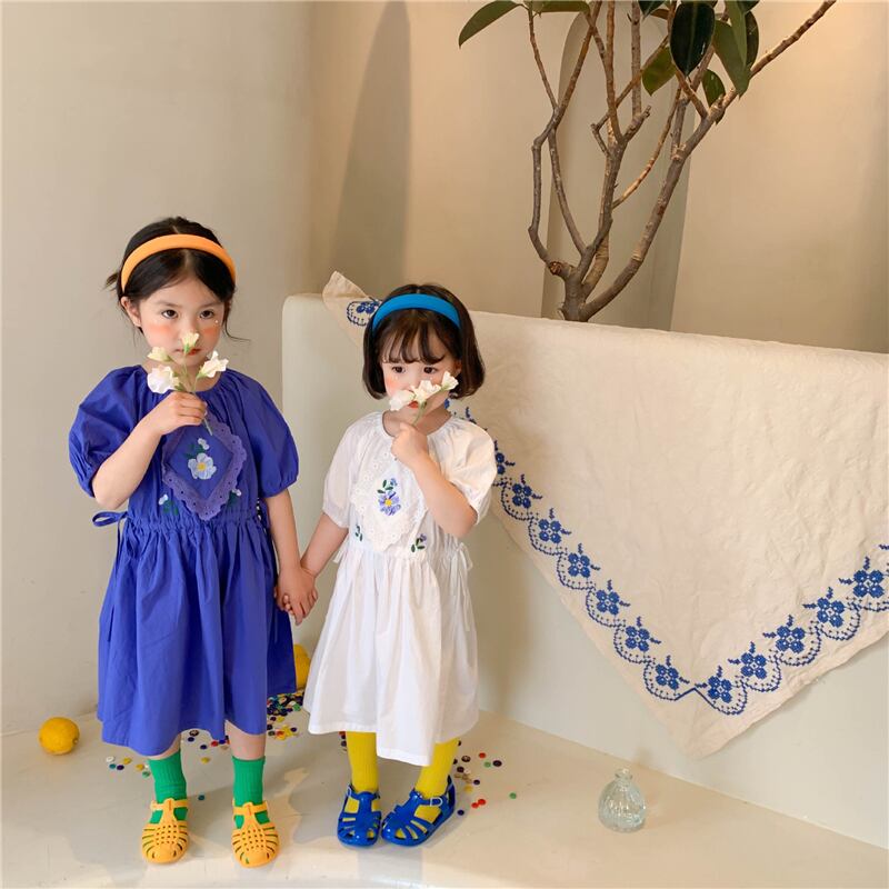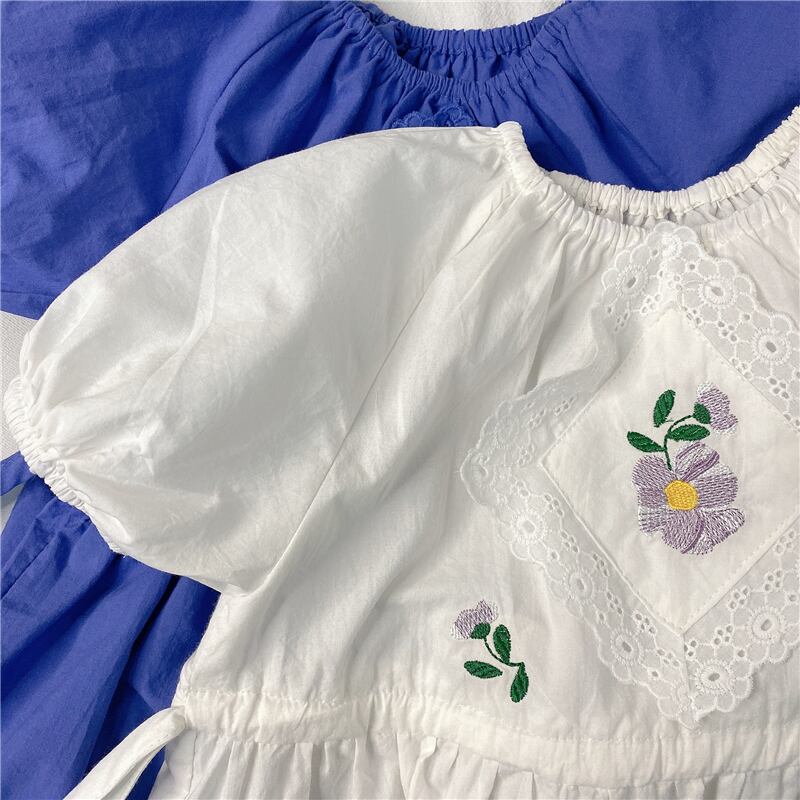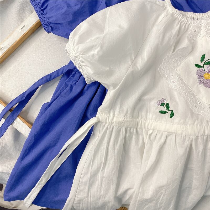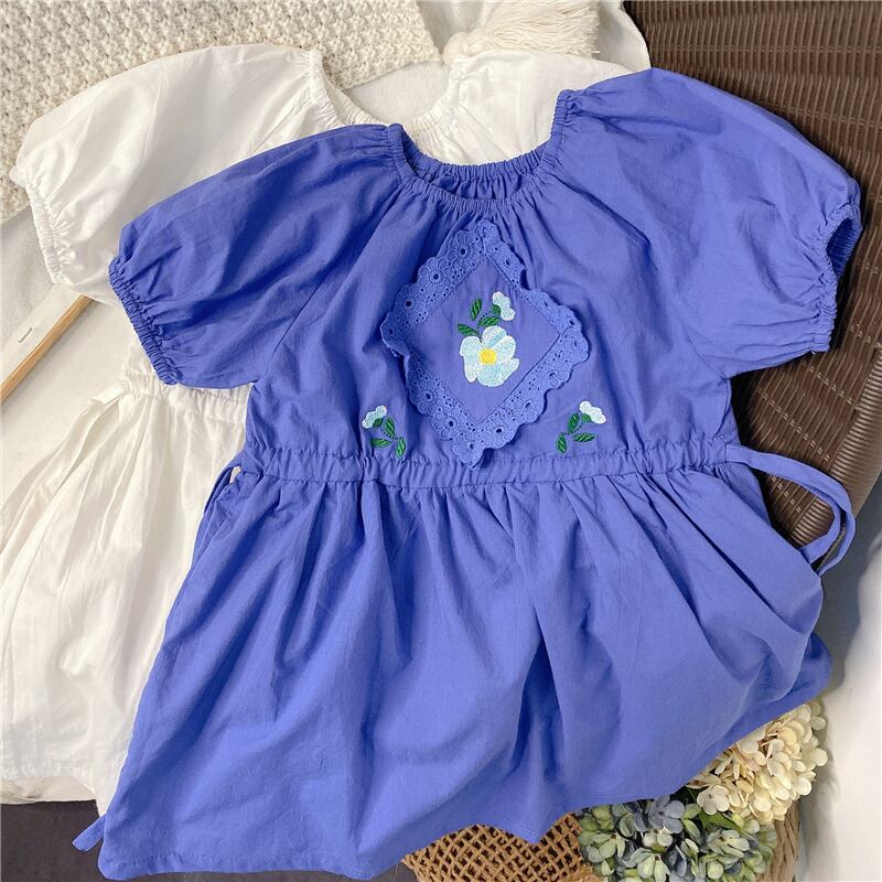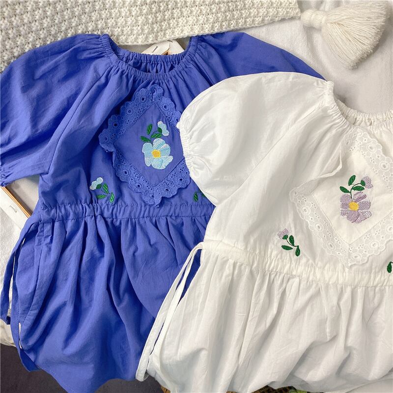 色:ドローストリング刺繡ワンピース(パープルブルー),巾着刺繡ワンピース(白)