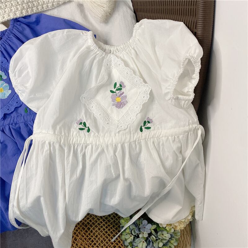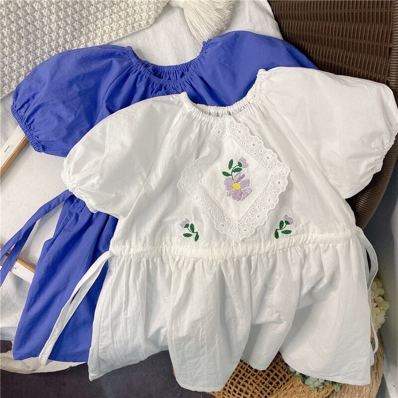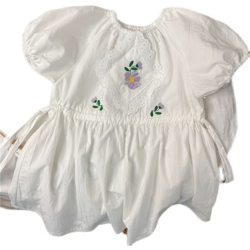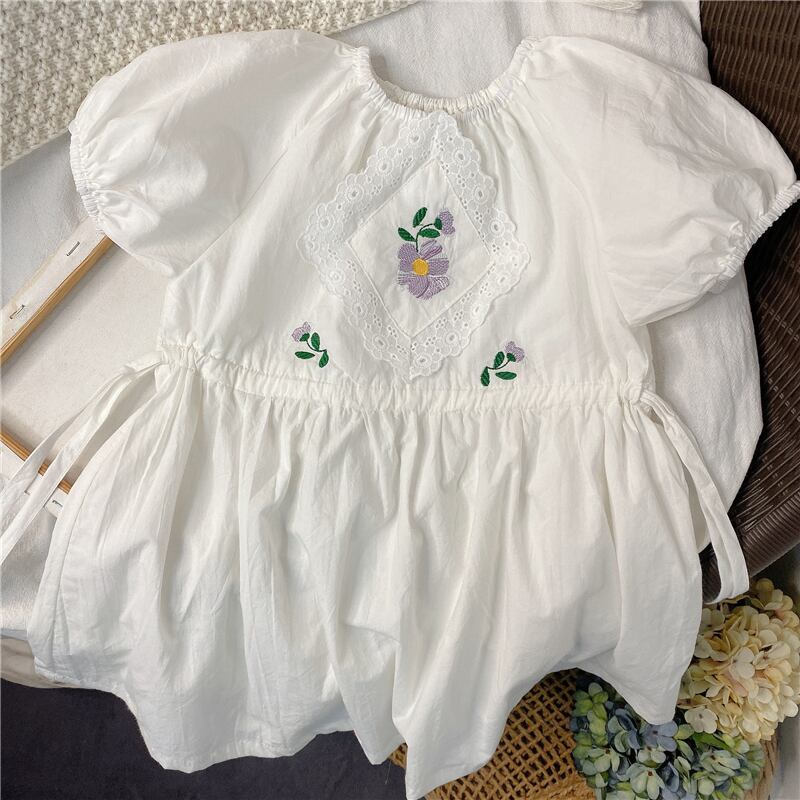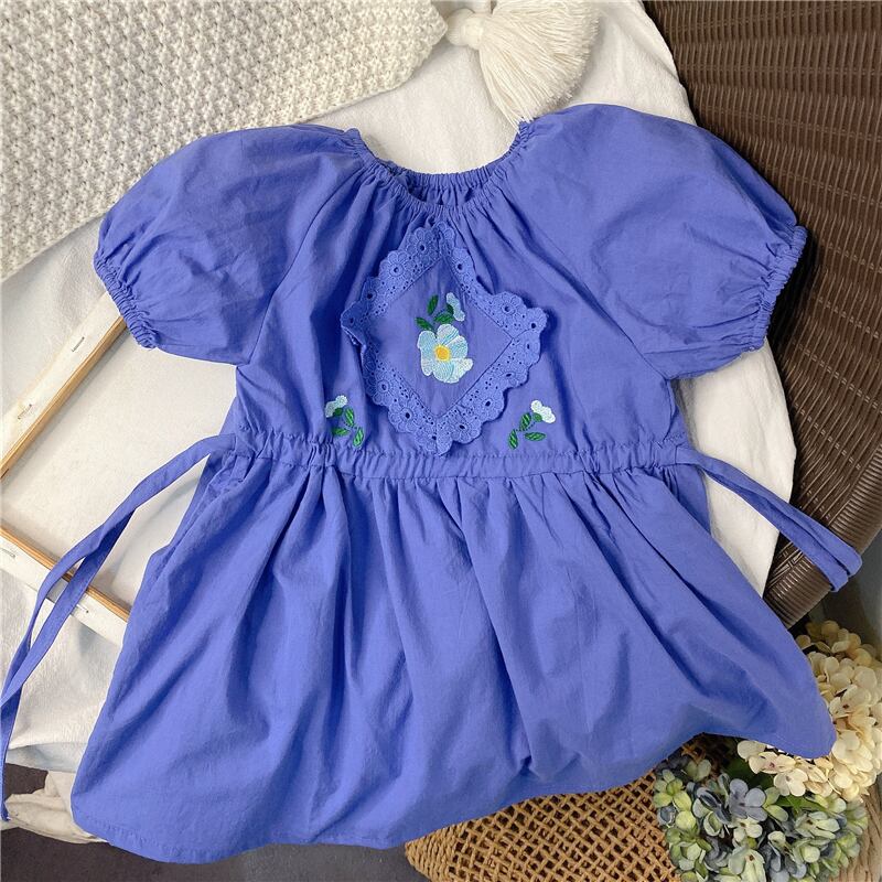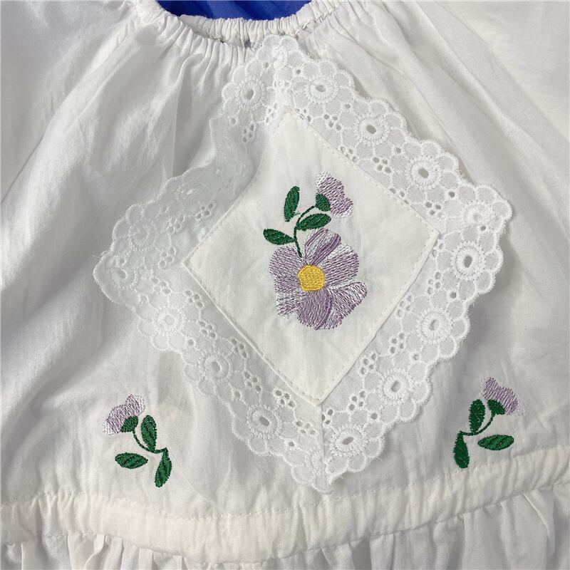 色:ドローストリング刺繡ワンピース(パープルブルー),巾着刺繡ワンピース(白)