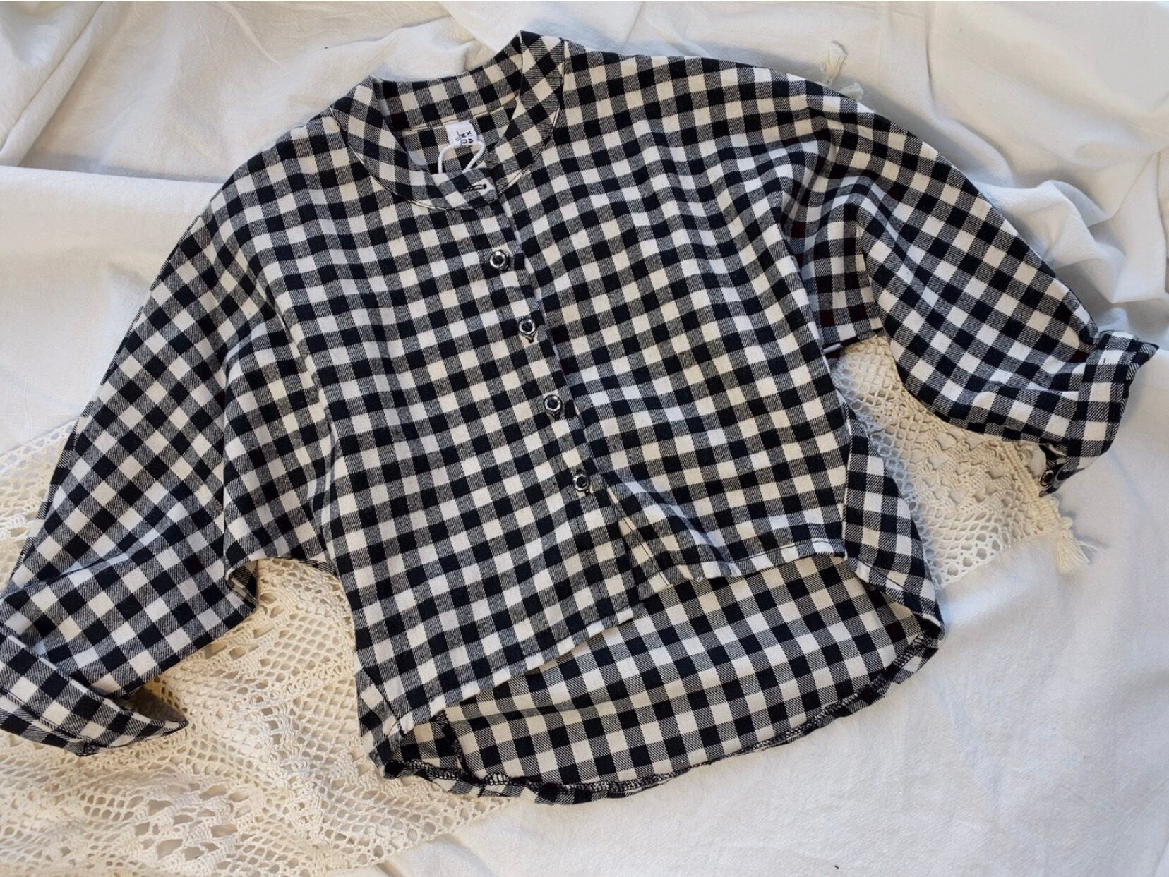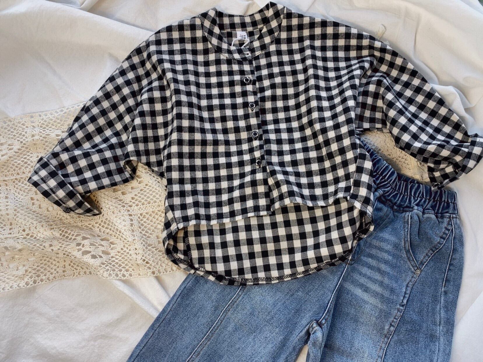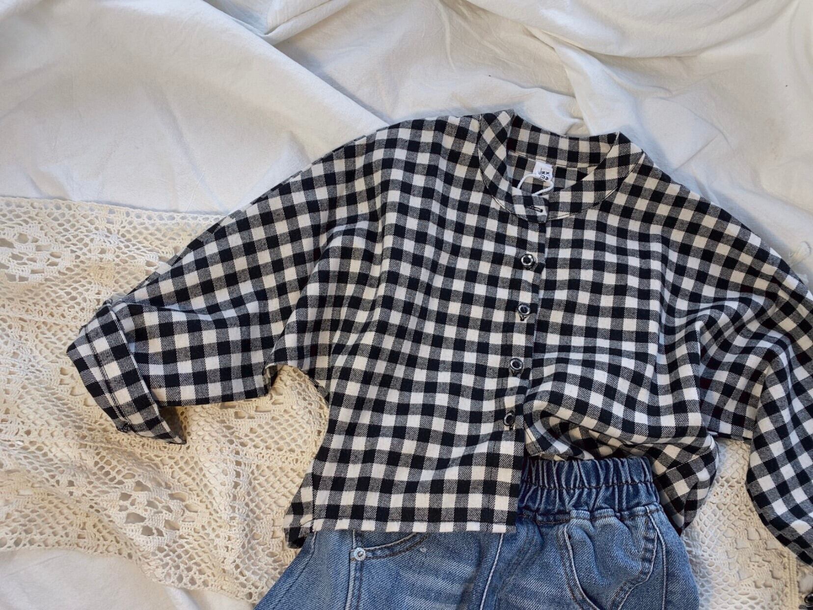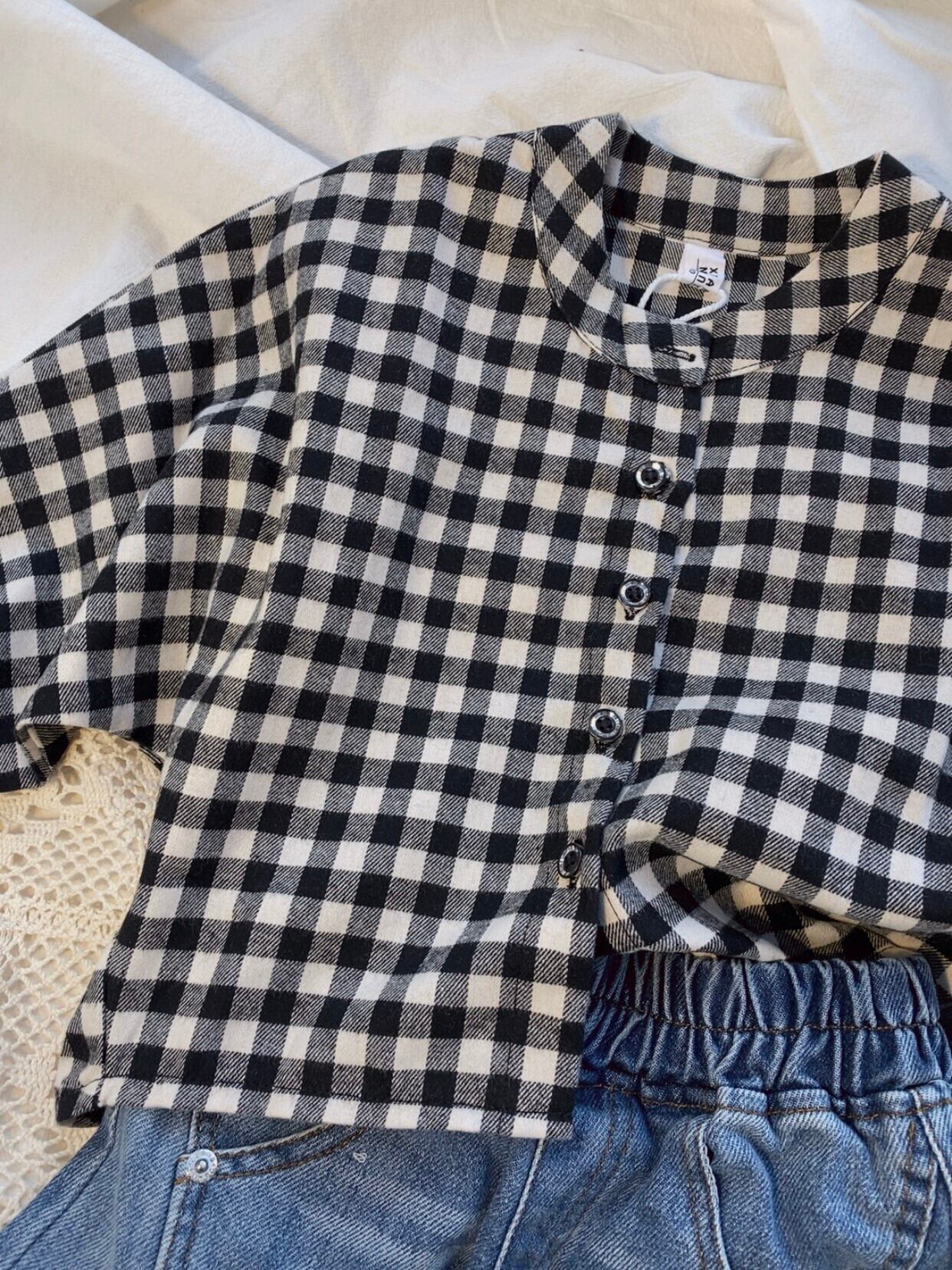 色:起毛ブラックとホワイトのチェックシャツ
