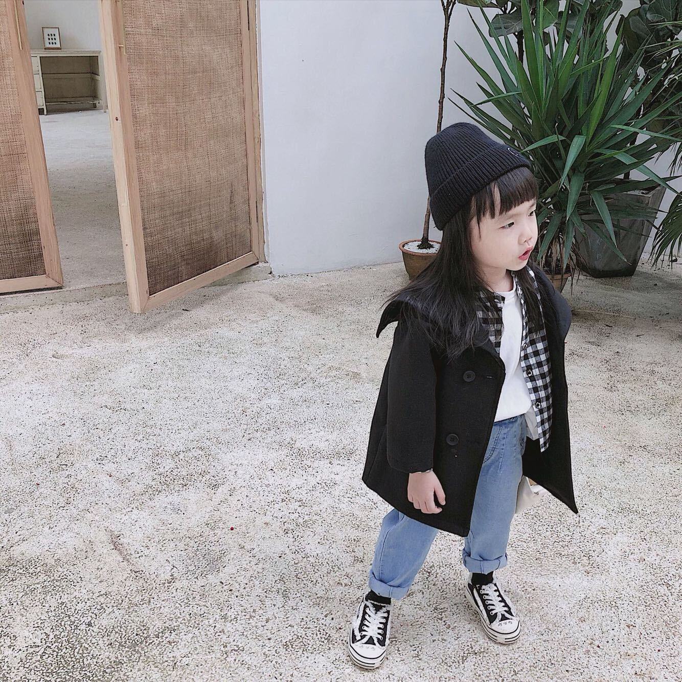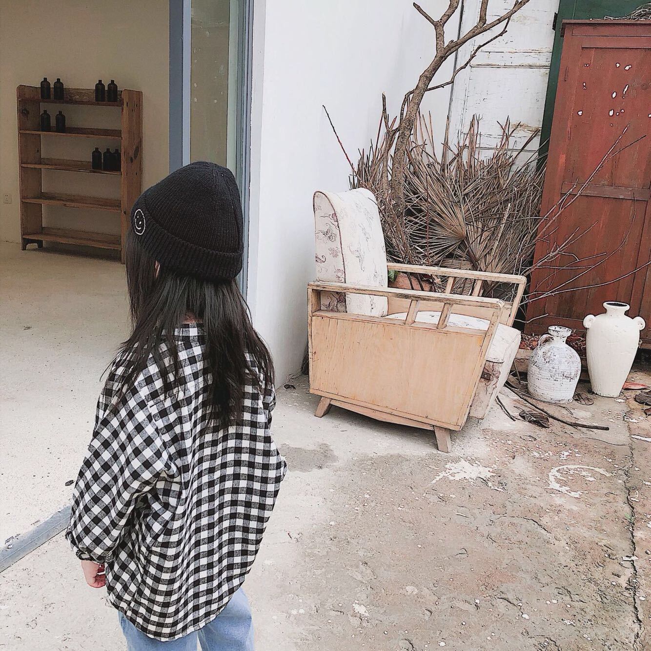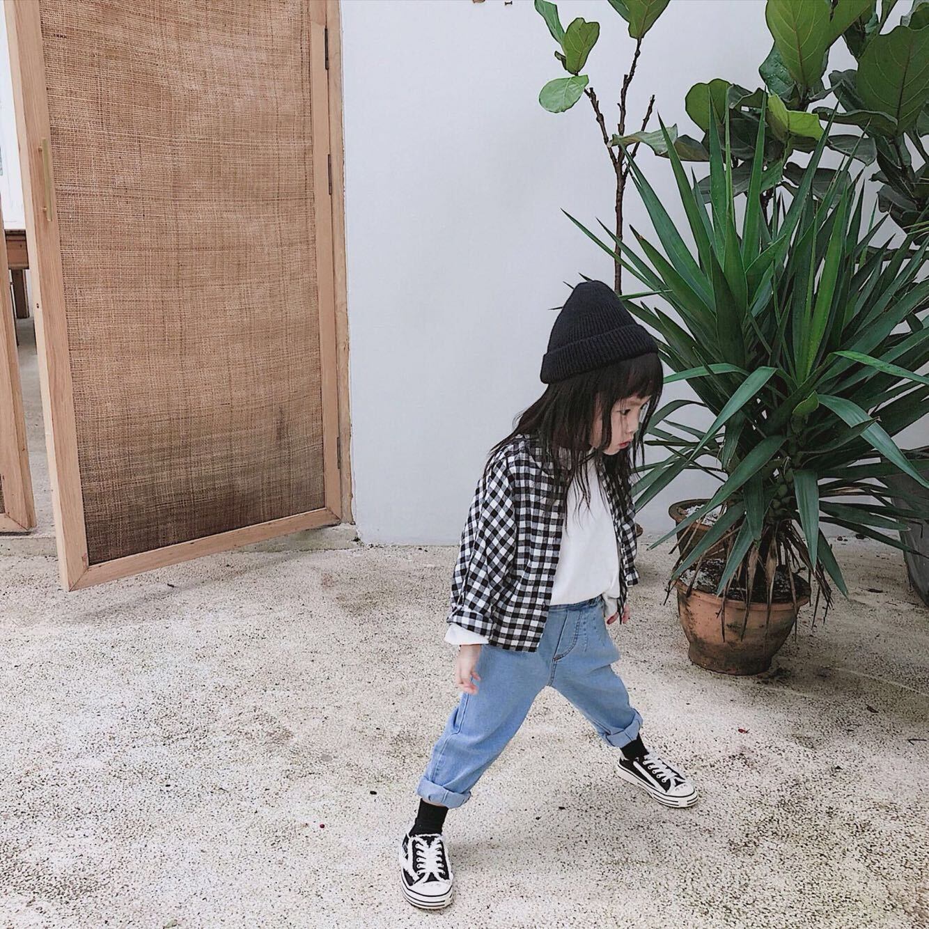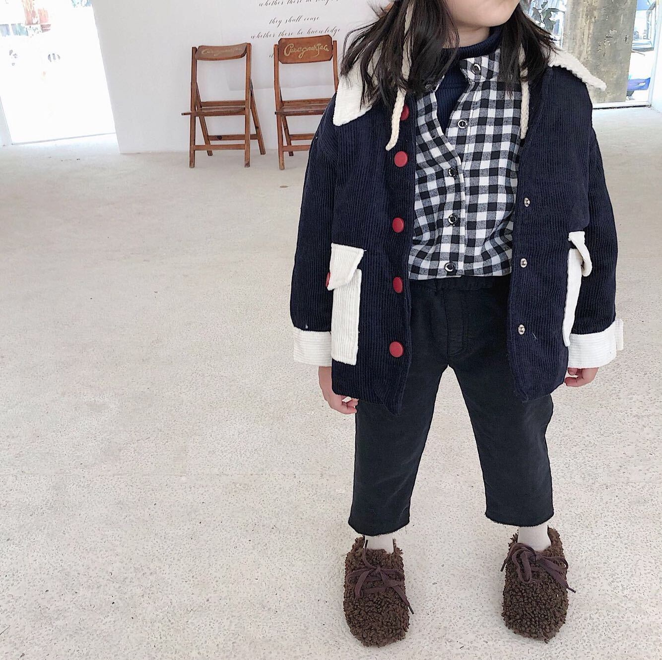 色:起毛ブラックとホワイトのチェックシャツ