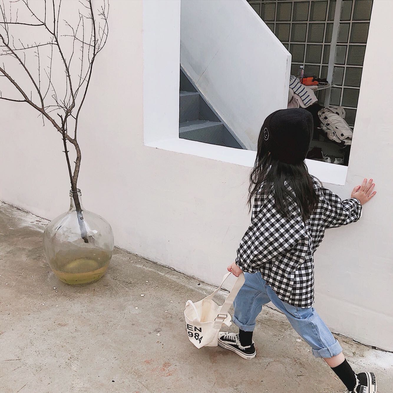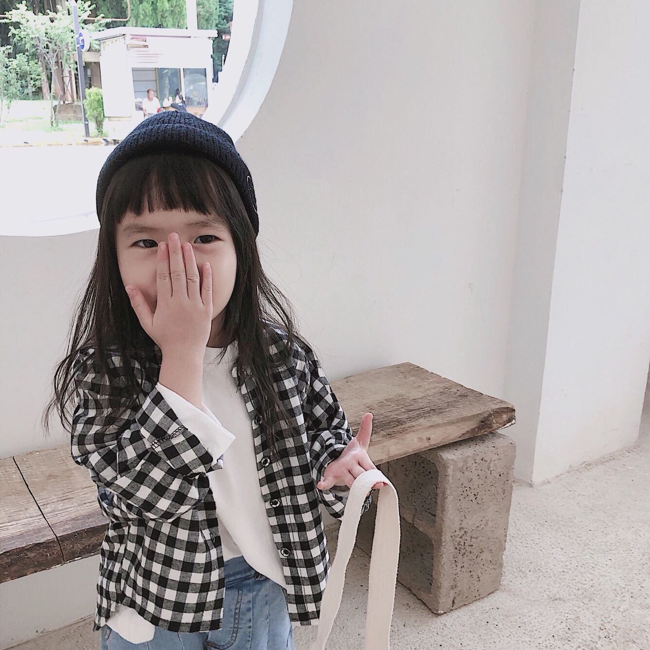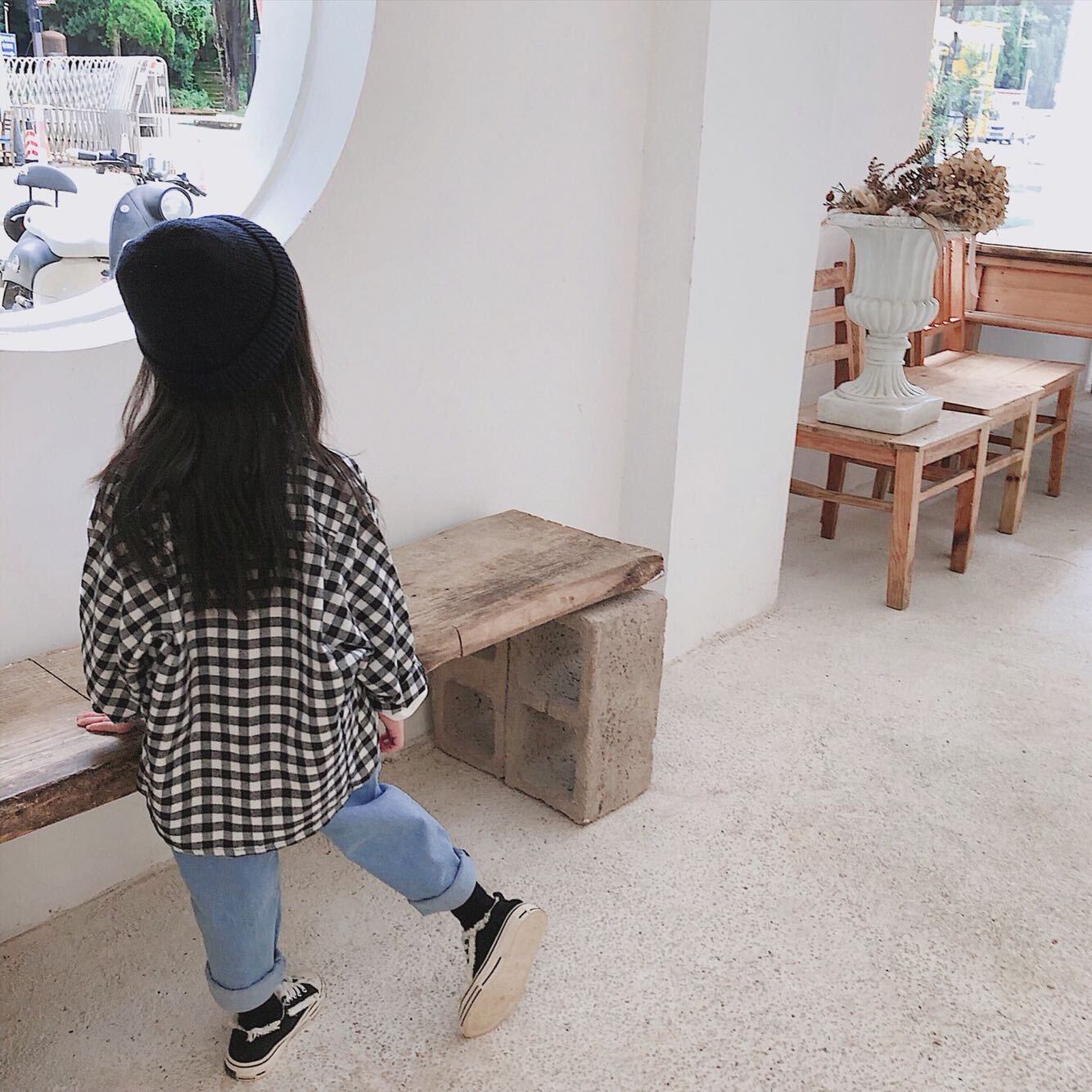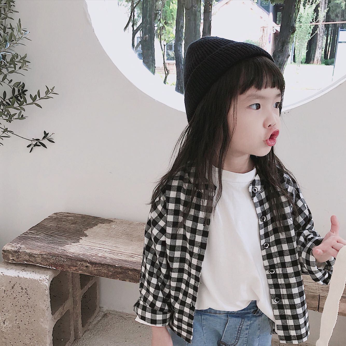 色:起毛ブラックとホワイトのチェックシャツ