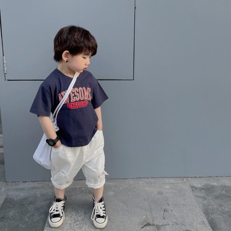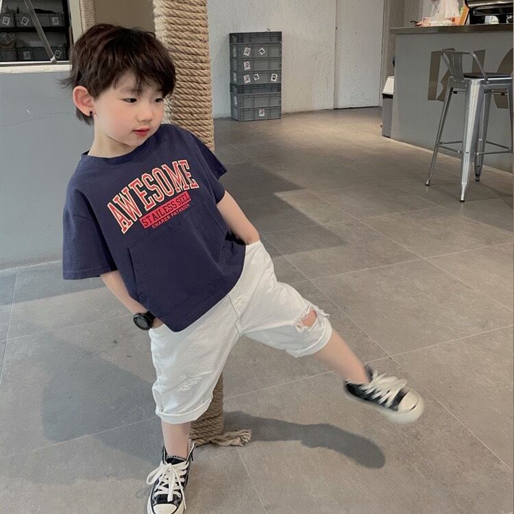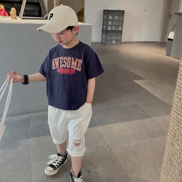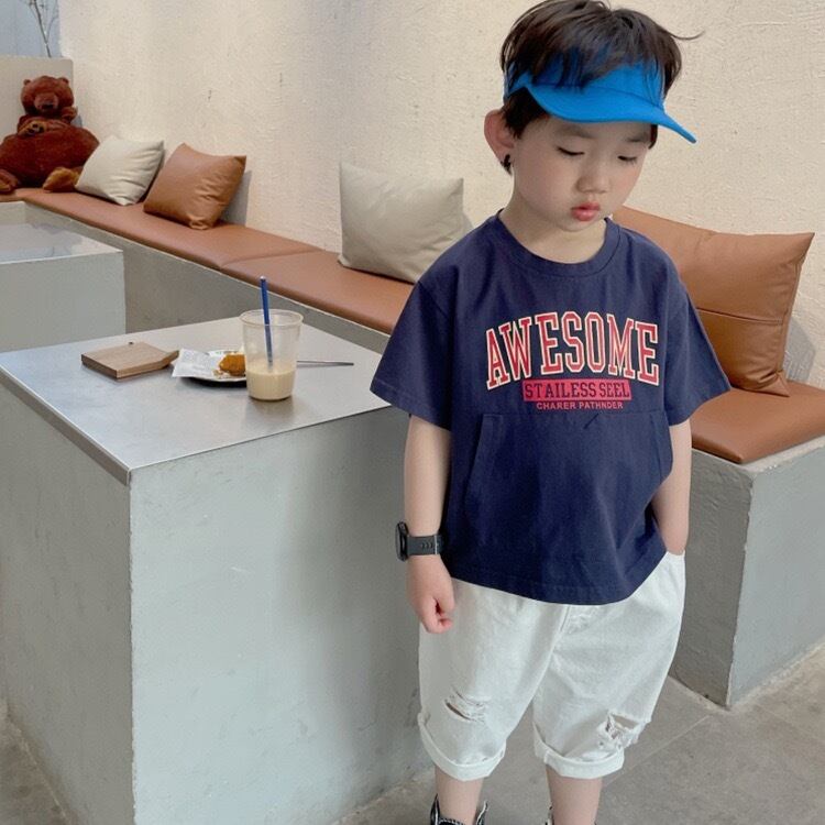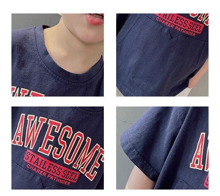 サマー半袖スリーブトップス スタンダードカラーTシャツ プリント ショート コットン レトロ ハーフスリーブ 夏物 ピュア 4/24 mi0925937650368 | Sagittarius By Constellation -KIDS&BABY-