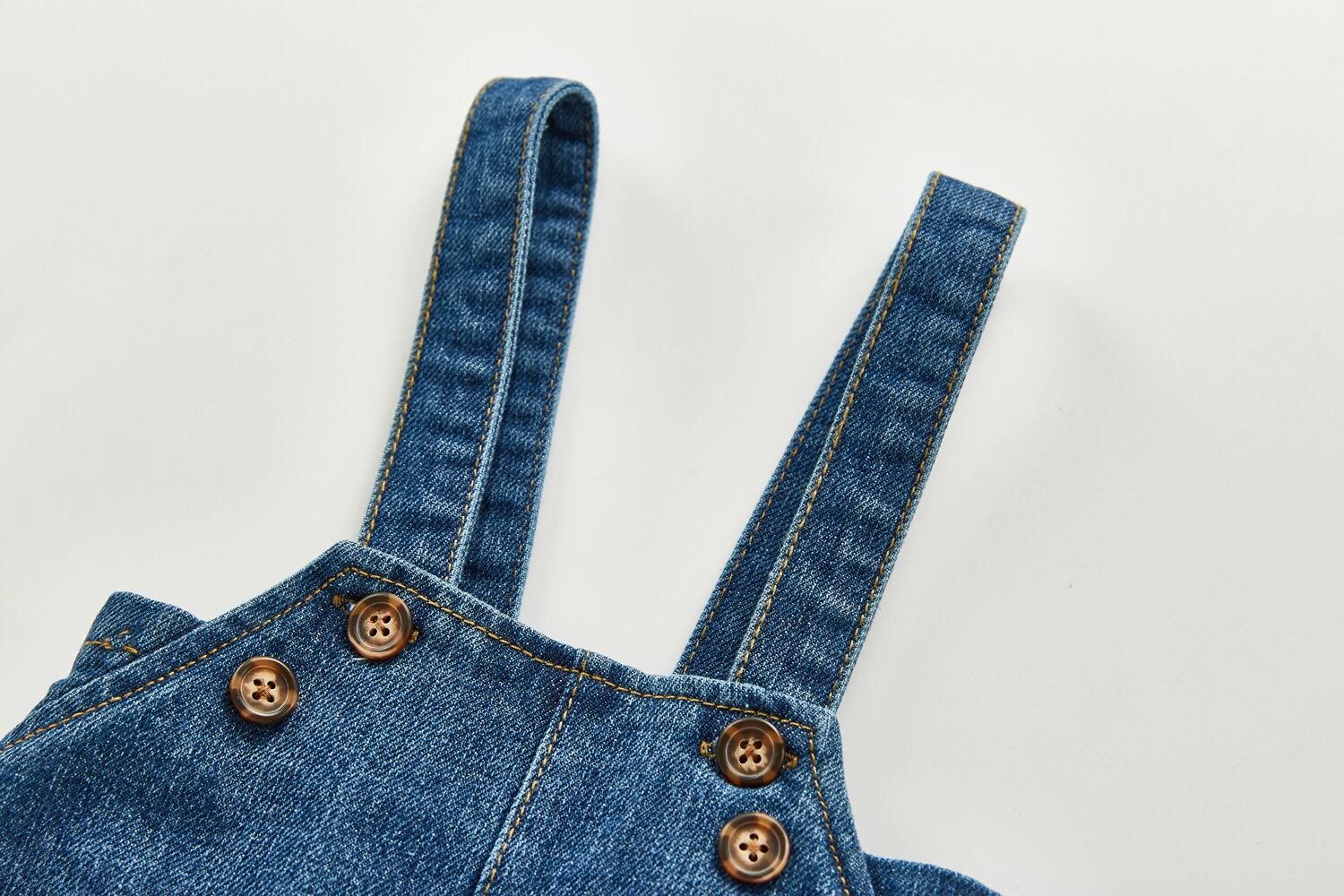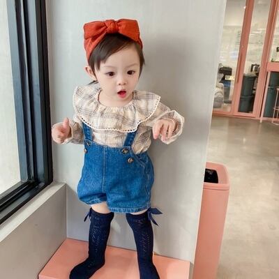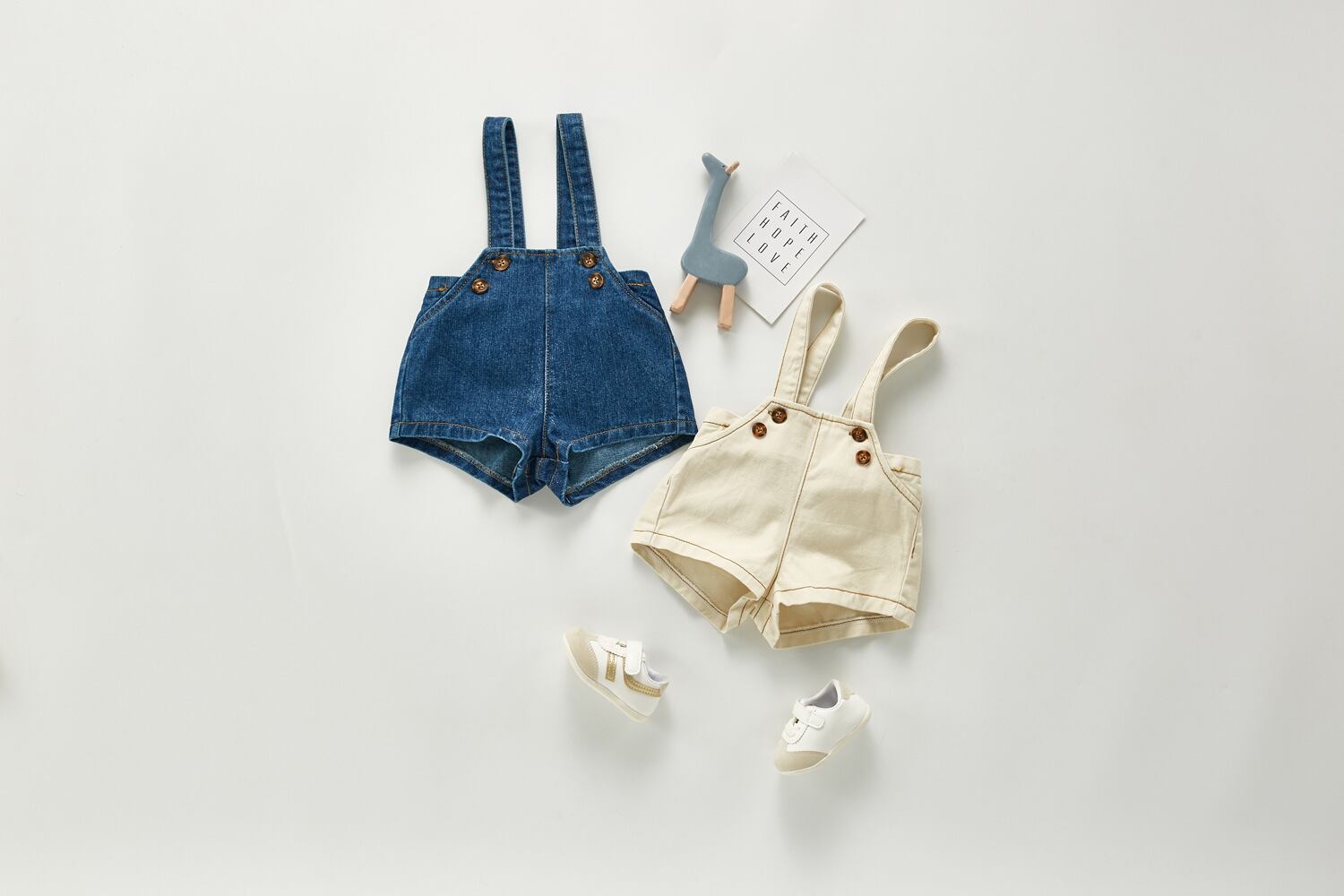 色:乳白色の花,カーキチェック柄,オフホワイトのデニムサスペンダーショーツ,ネイビーブルーデニムサスペンダーショーツ