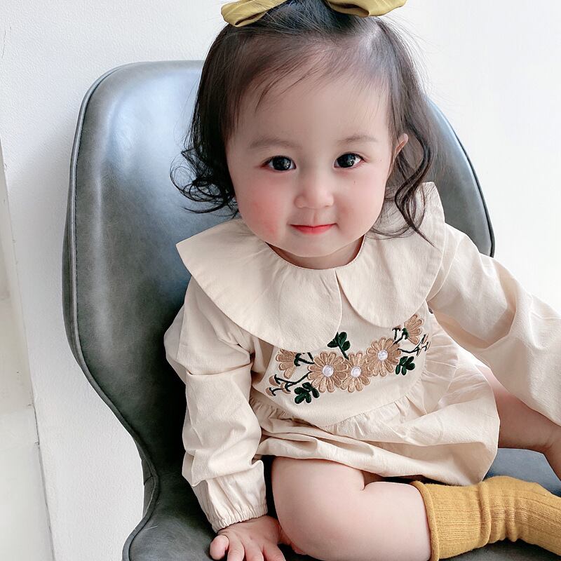 スプリングロンパース オールインワン ワンピース ロング レッド コットン 刺繍 春物 5/15 女の子BABY mi0913568661503