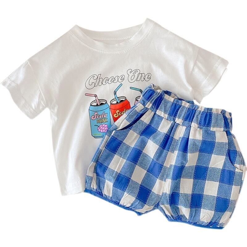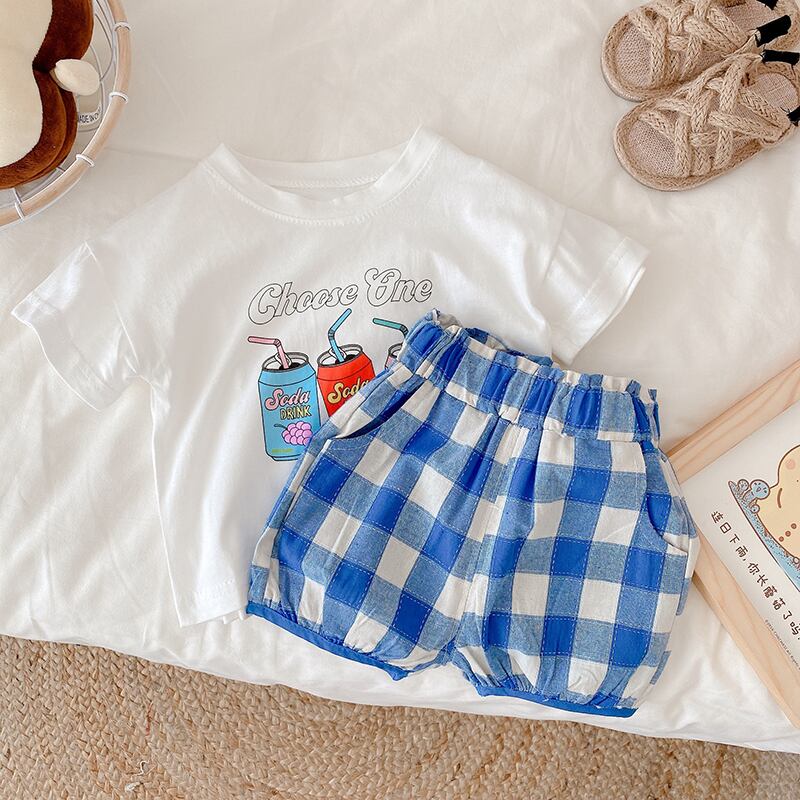 サマーTシャツ 格子柄ショーツ 薄手カジュアル 夏物 ブルマー 5/26 mi0981819525759