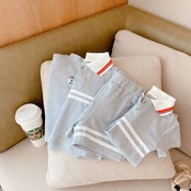 色:ラウンドネックTシャツ,グレーのポロシャツ,グレーのショートパンツ,ラペルジャンプスーツ