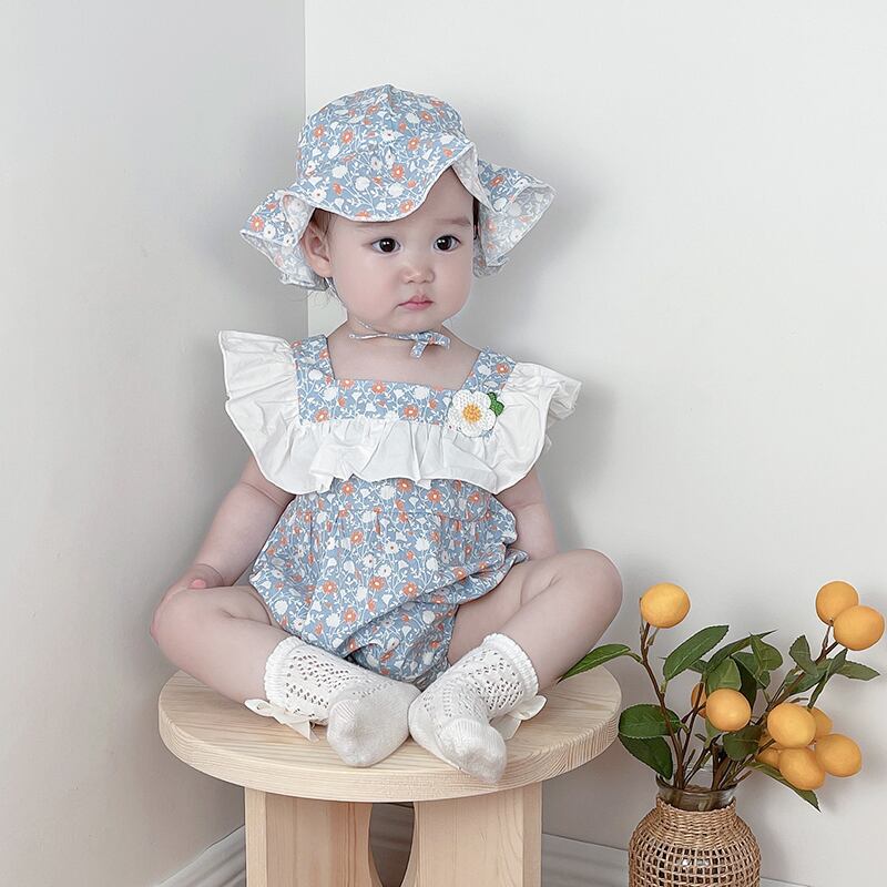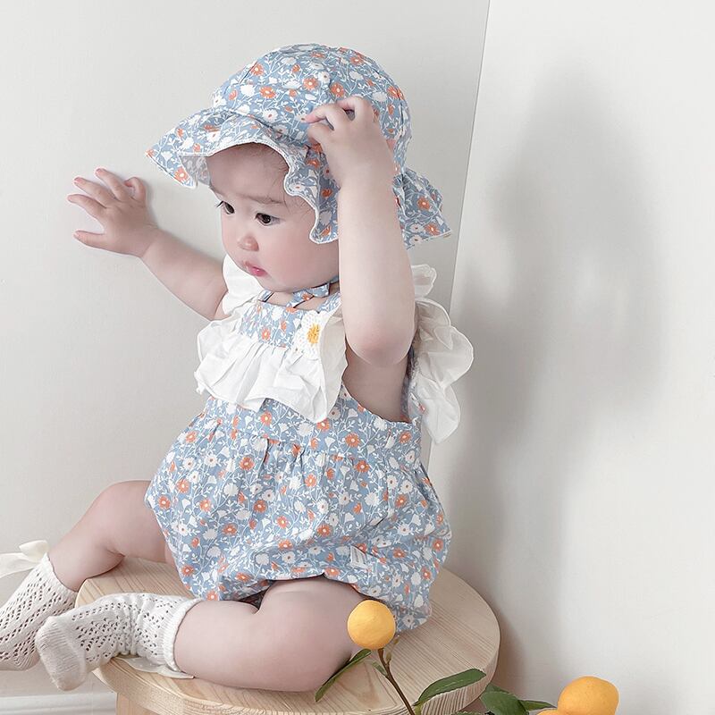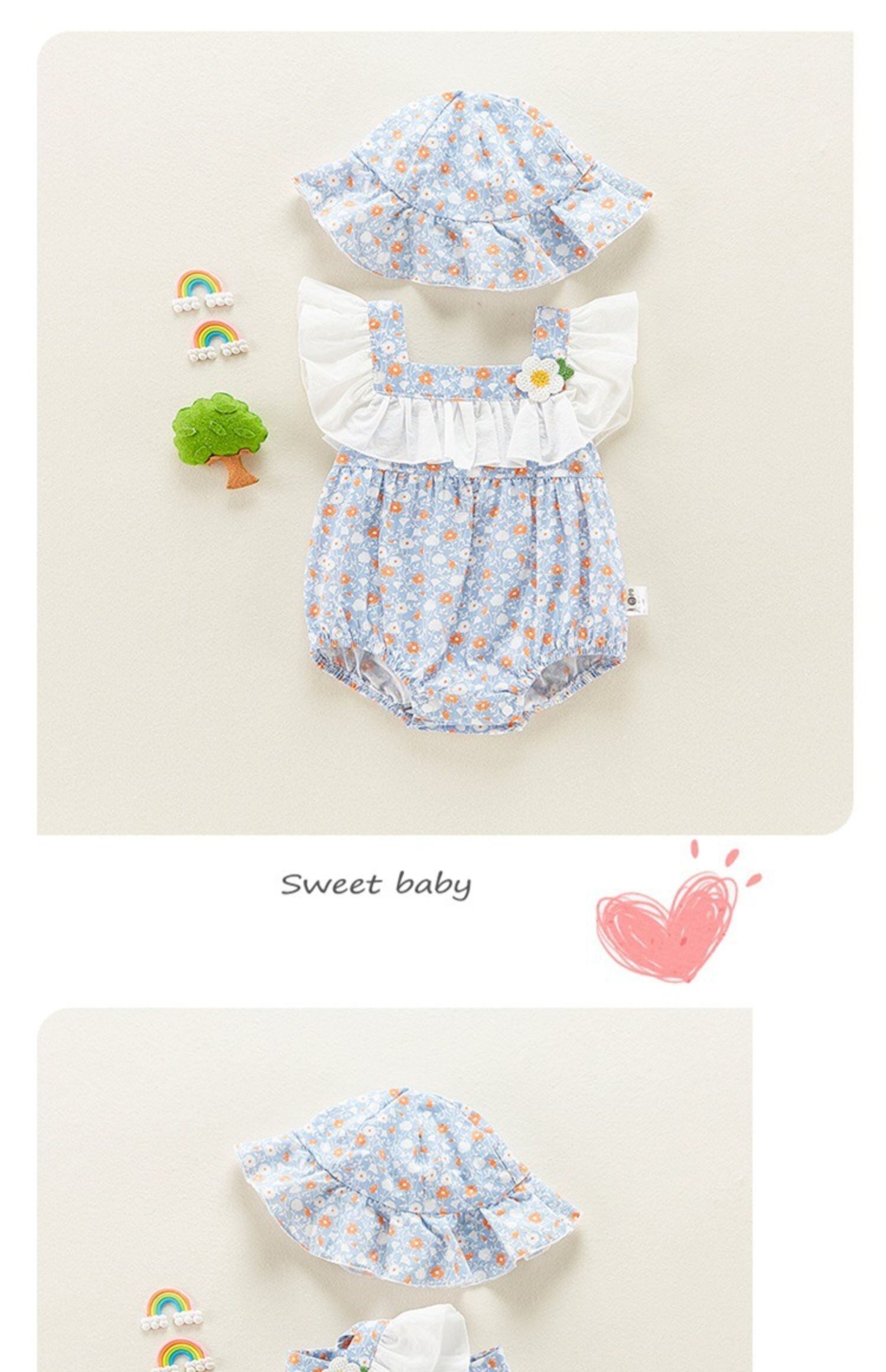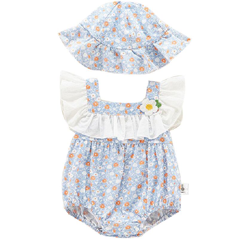 スタイルサマーフローラルロンパース オールインワン 薄手トライアングル 帽子 夏物 花柄 5/26 mi0957158884169 | Sagittarius By Constellation -KIDS&BABY-