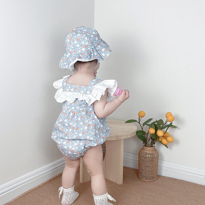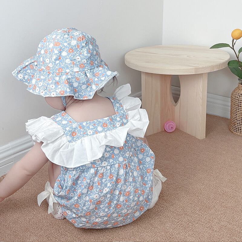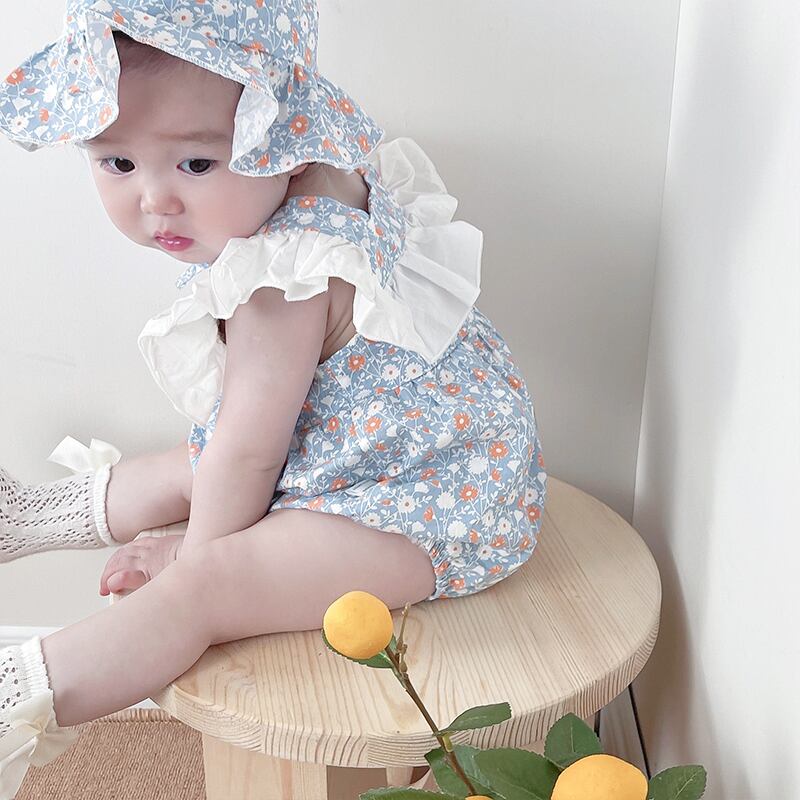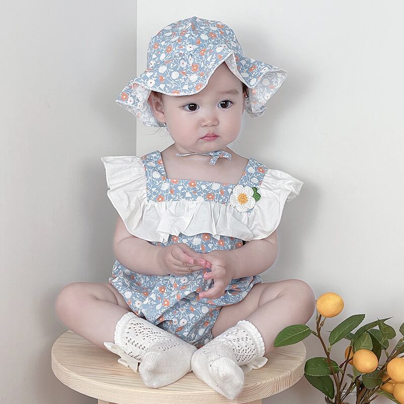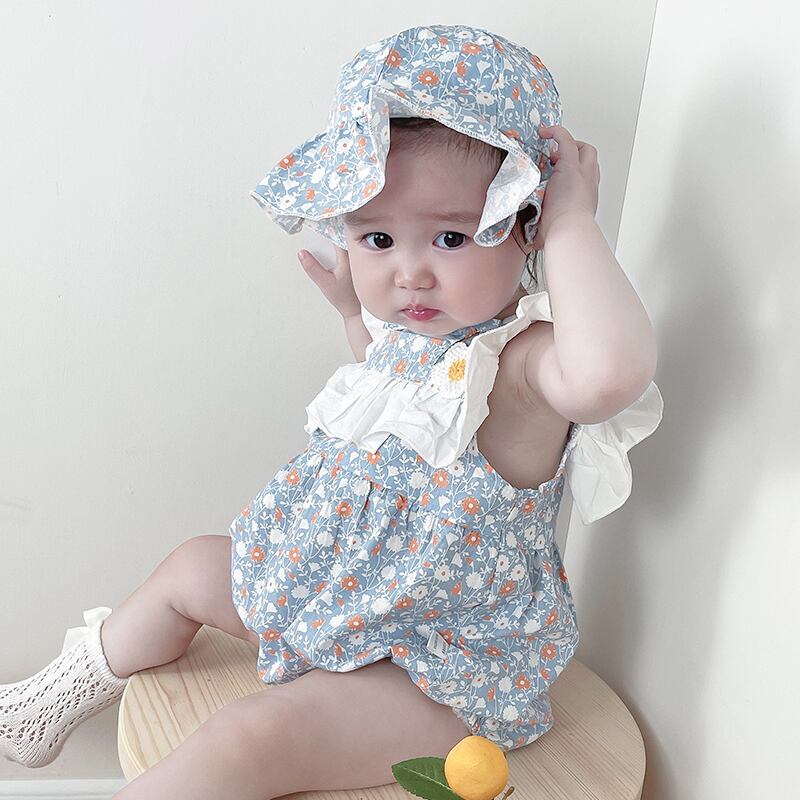 スタイルサマーフローラルロンパース オールインワン 薄手トライアングル 帽子 夏物 花柄 5/26 mi0957158884169 | Sagittarius By Constellation -KIDS&BABY-