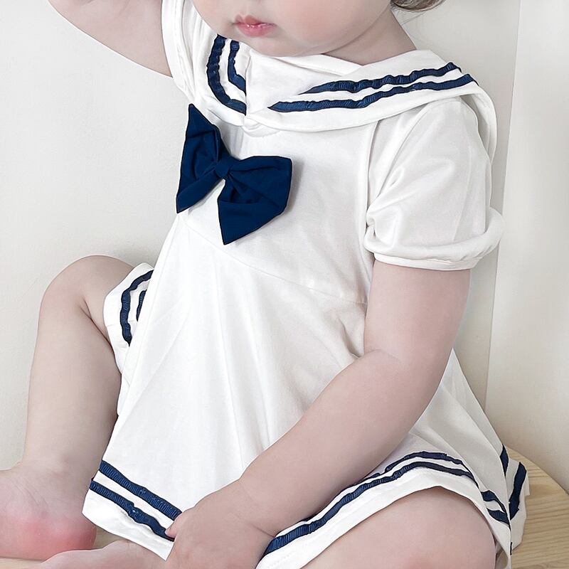 サマーネイビーリボントライアングルロンパース オールインワン スタイルスカート 大人ガーリー スウィート キュート カジュアル 夏物 5/26 mi092577700120 | Sagittarius By Constellation -KIDS&BABY-