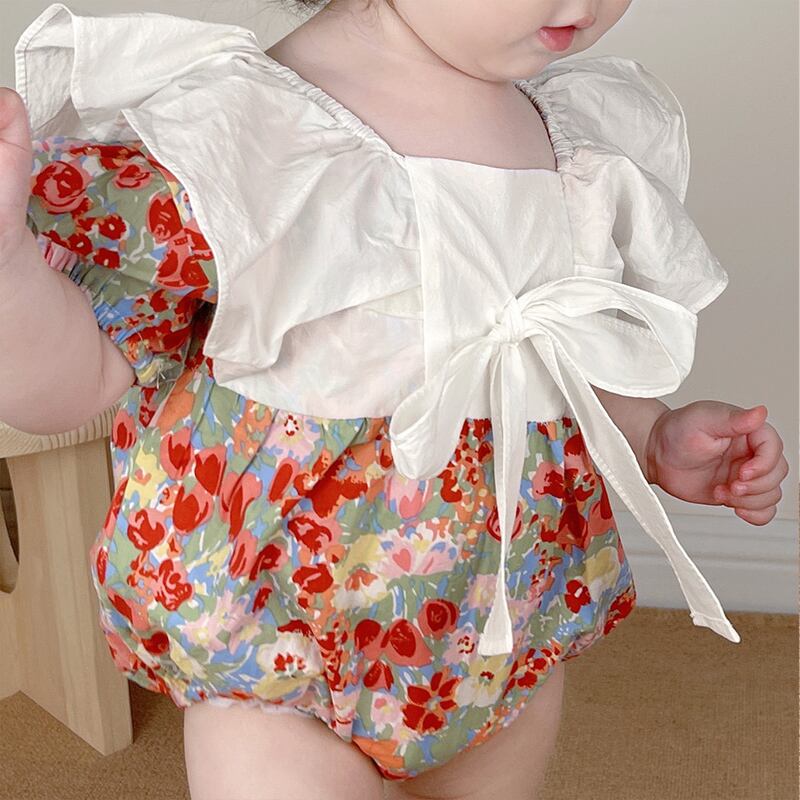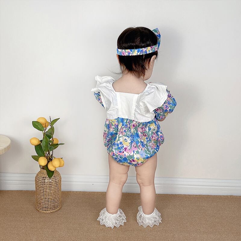 色:レッドフローラルロンパース+ヘアバンド,ブルーフローラルロンパース+ヘアバンド