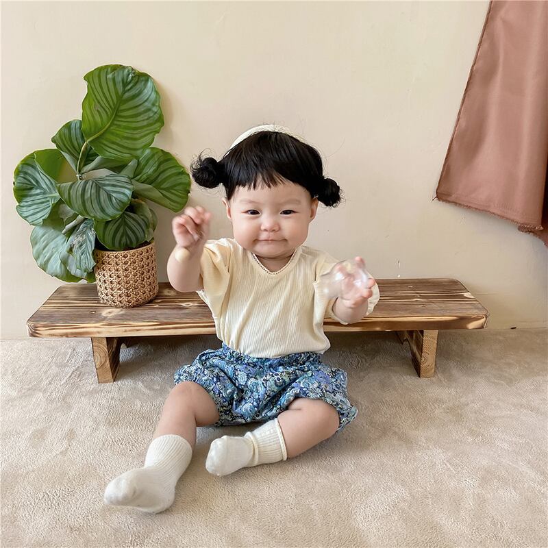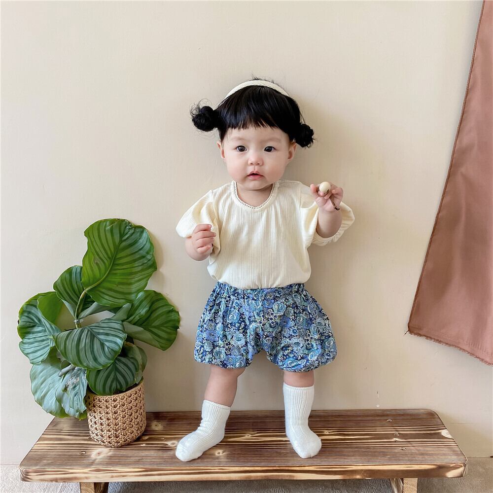 サマースリーブストライプトップス Flowerデザイン ショーツ カジュアルフローラル薄手 夏物 ブルマー 花柄 フラワーデザイン 5/26 mi093939316746