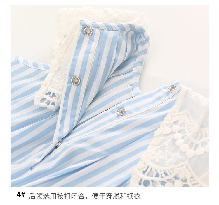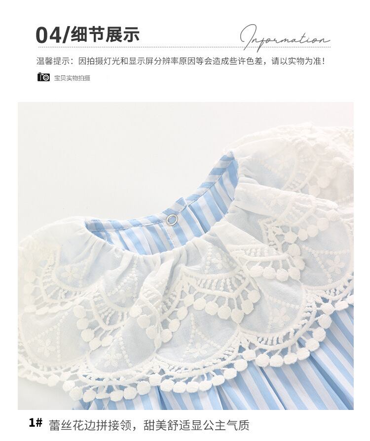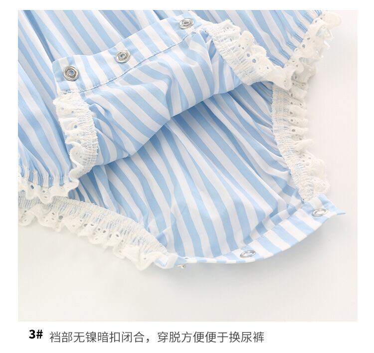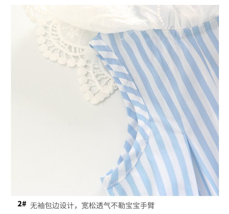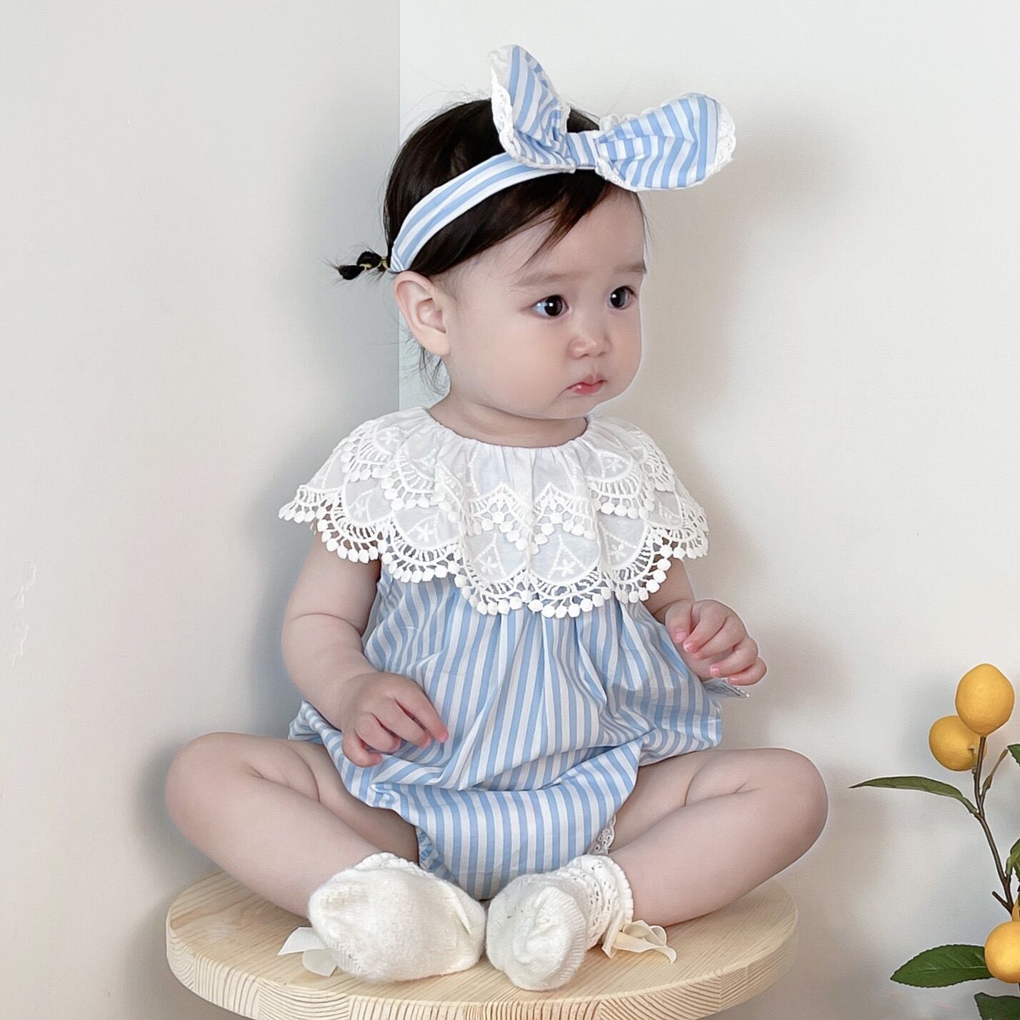 スタイルサマーレースカラーブルーホワイトストライプ薄手トライアングルロンパース オールインワン ヘアバンド 夏物 5/26 mi0941961422383