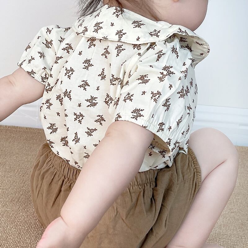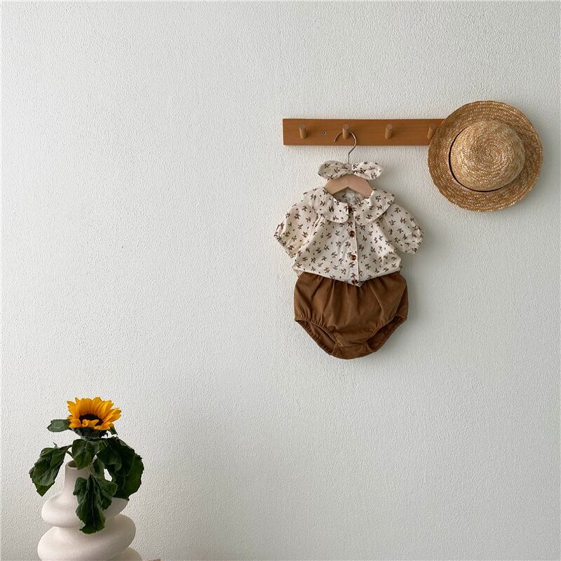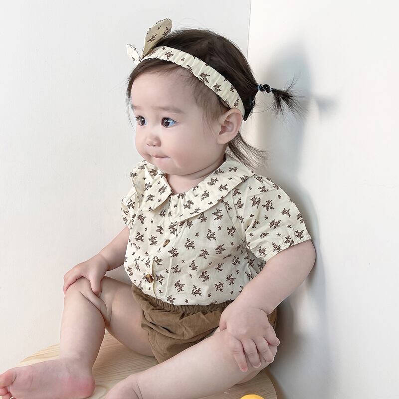 スタイルサマーカラーフローラルシャツ ブラウンショーツ ヘアバンド 薄手 夏物 ブルマー 花柄 5/26 mi0964732392794