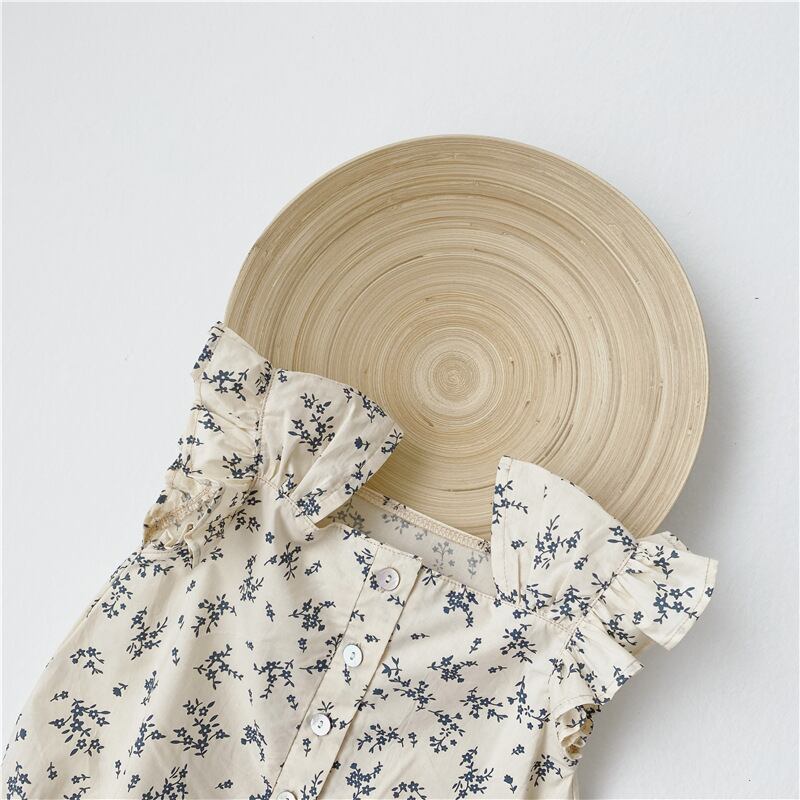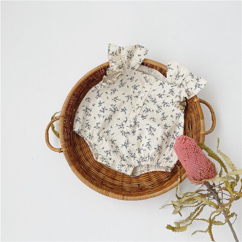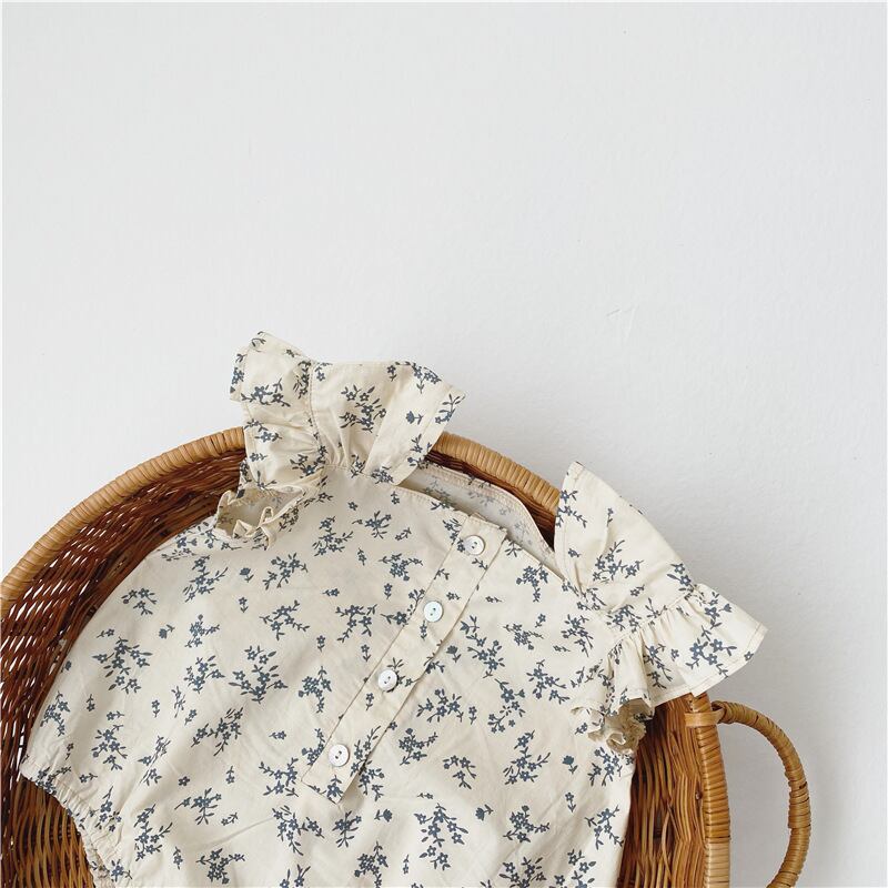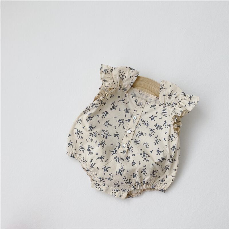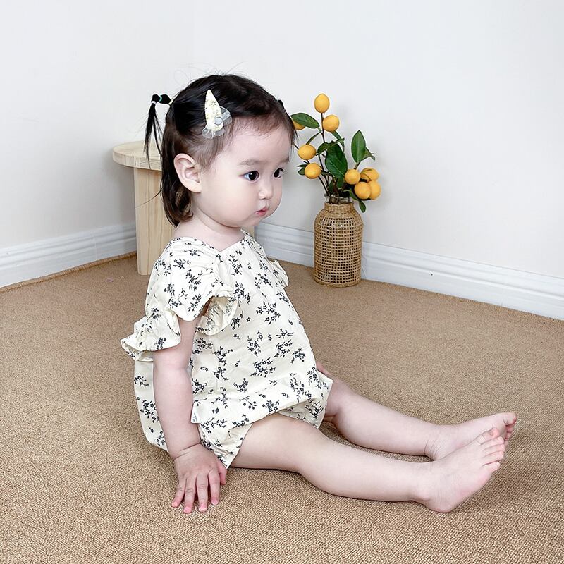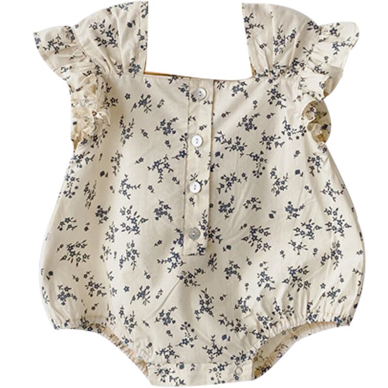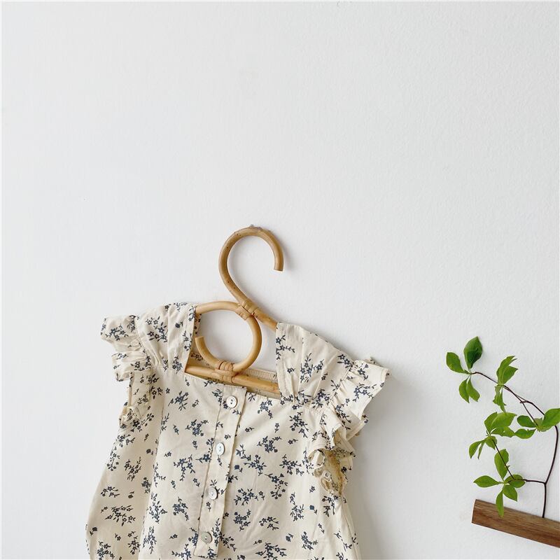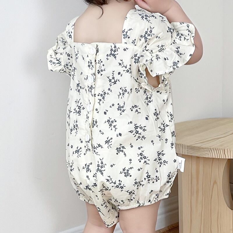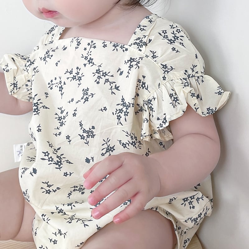 サマーカラーブルーフローラルトライアングルロンパース オールインワン 薄手 夏物 花柄 スクウェア 5/26 mi0959230144220