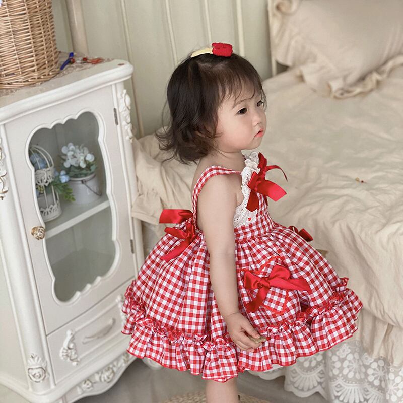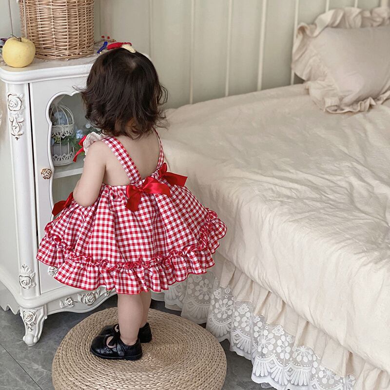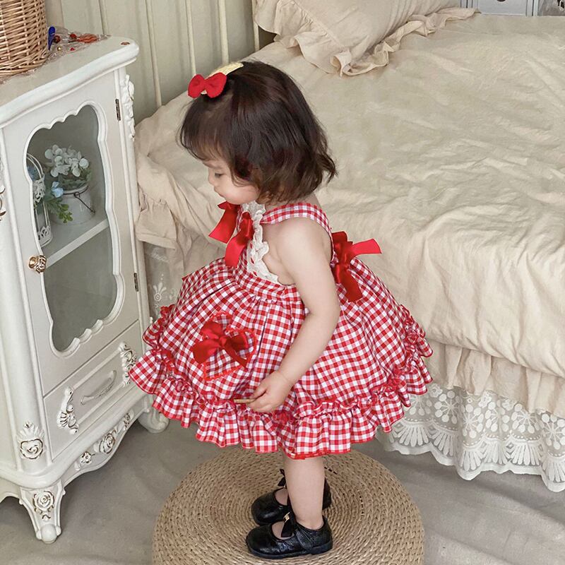 サマーレッド格子柄スカート ドレス 大人ガーリー スウィート キュート カジュアル 夏物 パニエ ペチコート 5/26 mi0925902361227