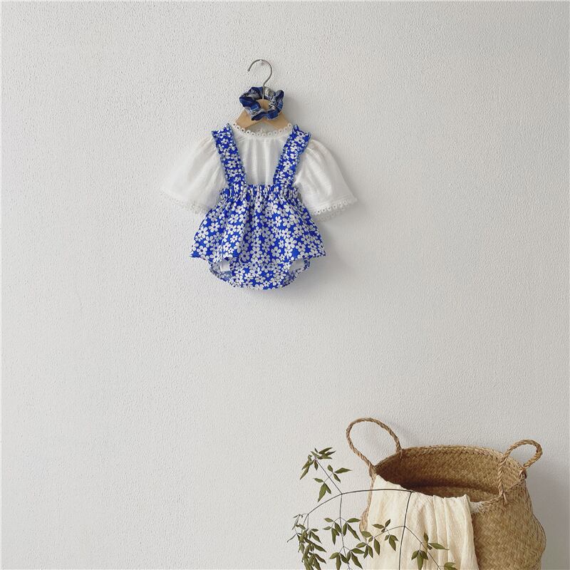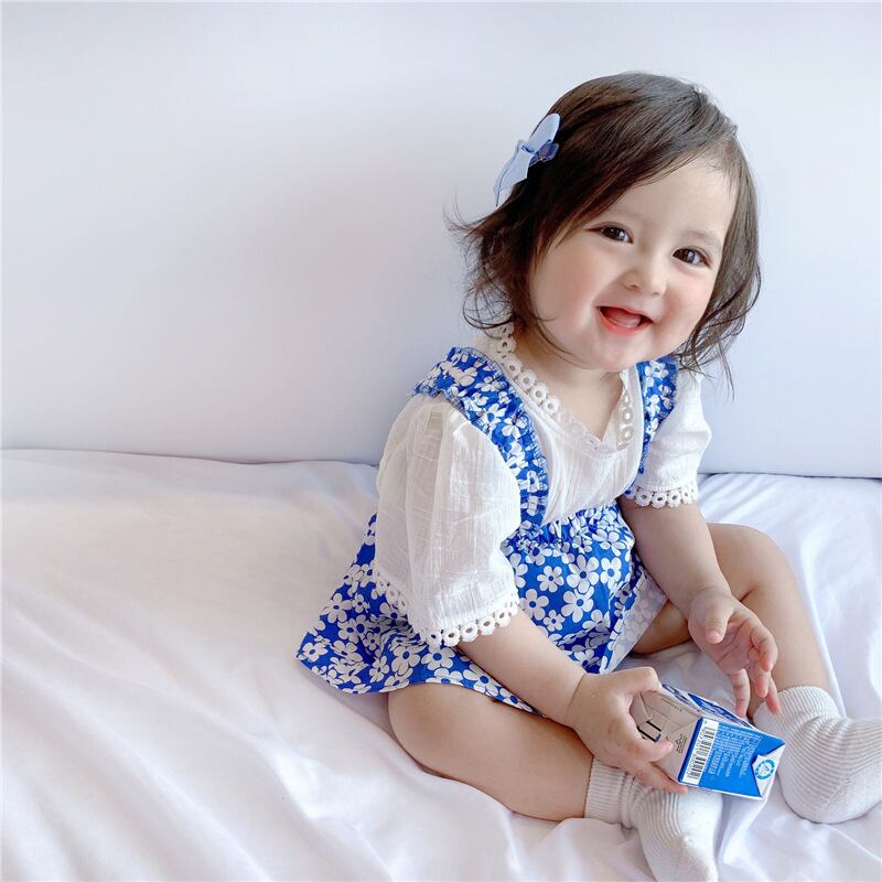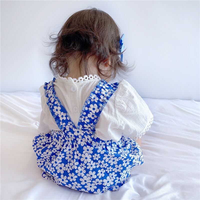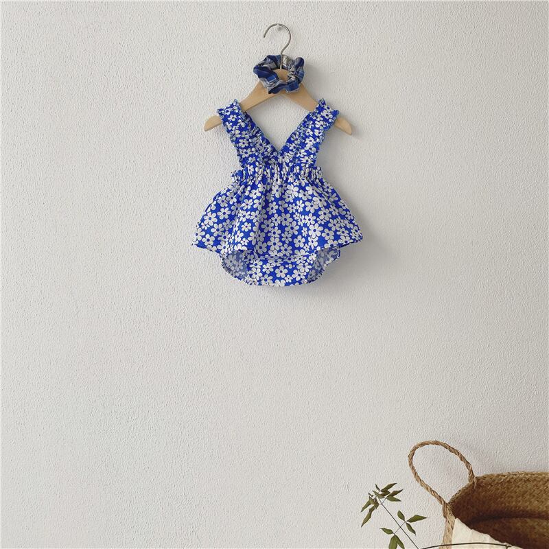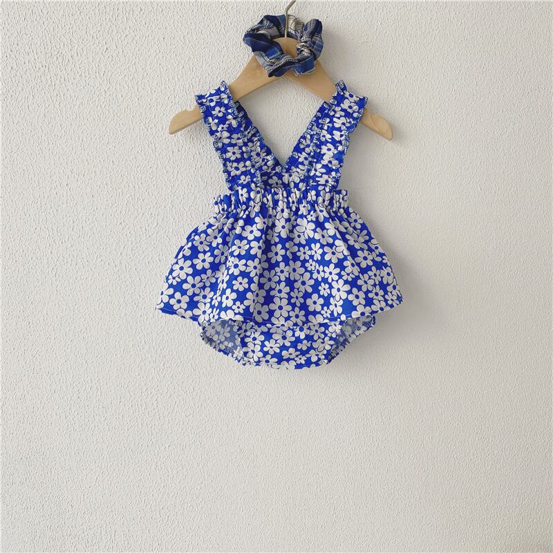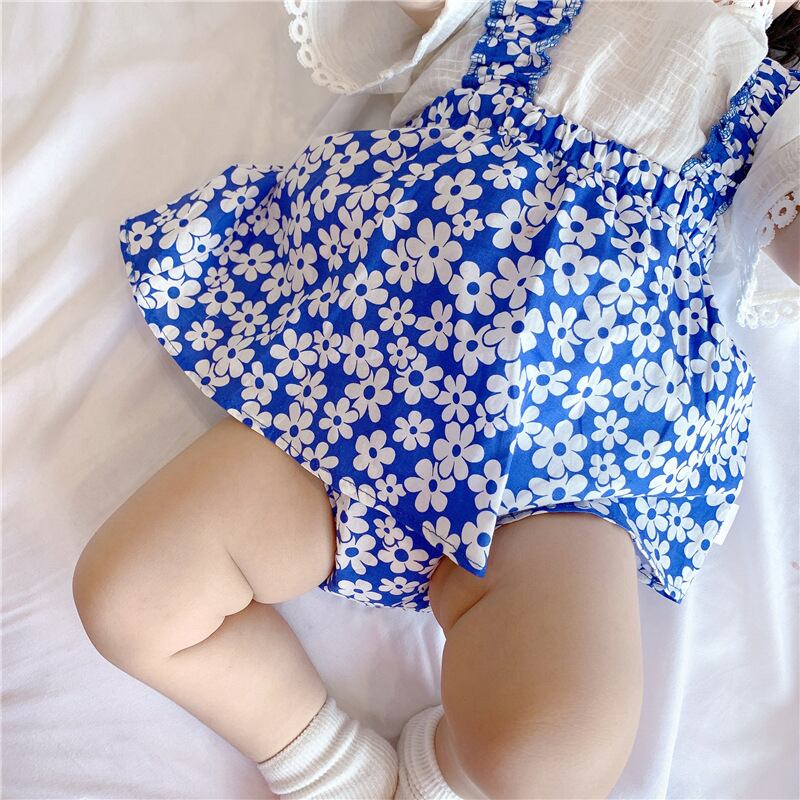 サマーブルーフローラルトライアングルロンパース オールインワン 夏物 花柄 5/26 mi0949805807063