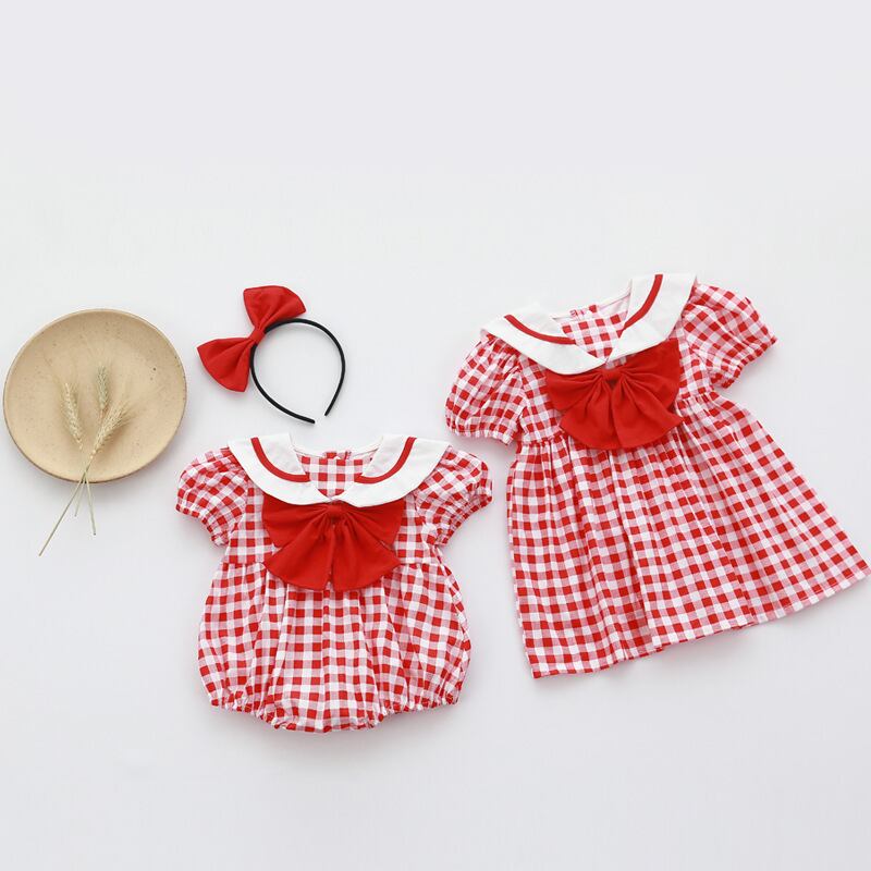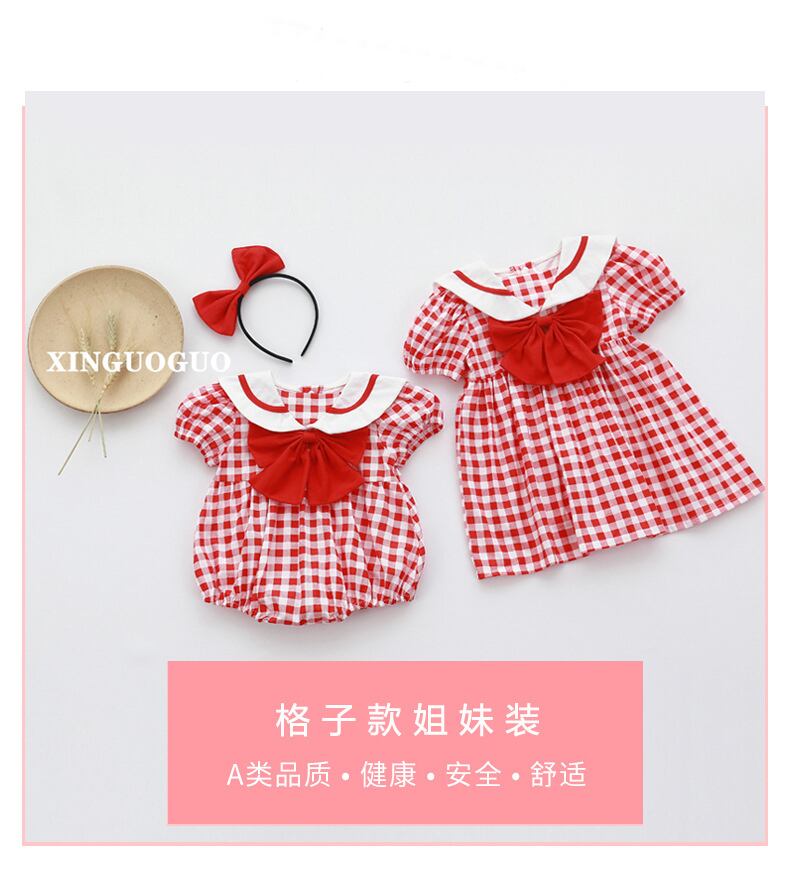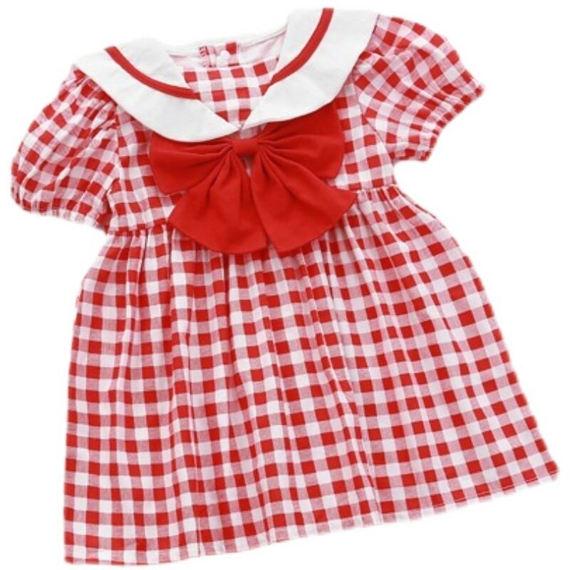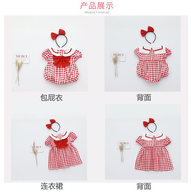 サマーレッド格子柄ネイビーカラートライアングルロンパース オールインワン スタイルドレス 大人ガーリー スウィート キュート カジュアル 夏物 5/26 mi0919668427601