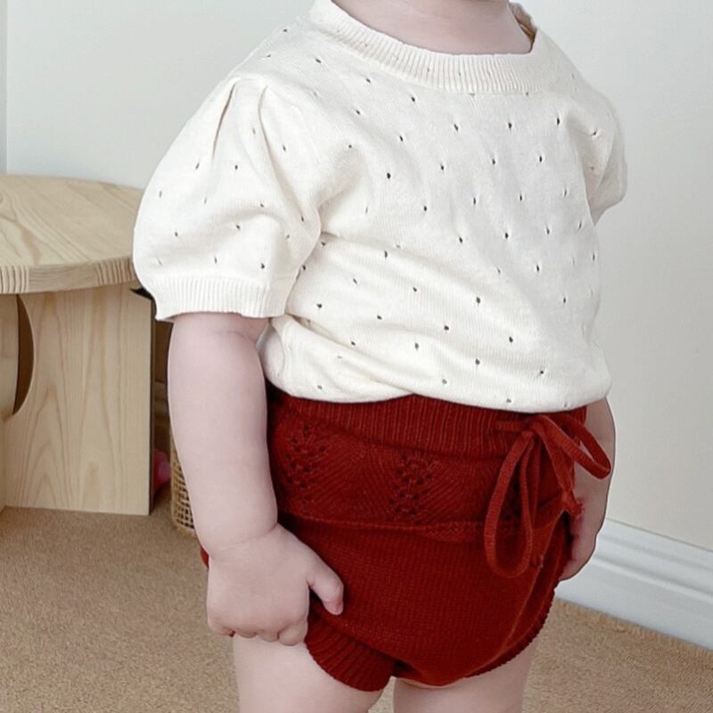 サマースリーブニットトップス ショーツ スタイルセット 大人ガーリー スウィート キュート カジュアル 夏物 ブルマー 5/26 mi0964102783461