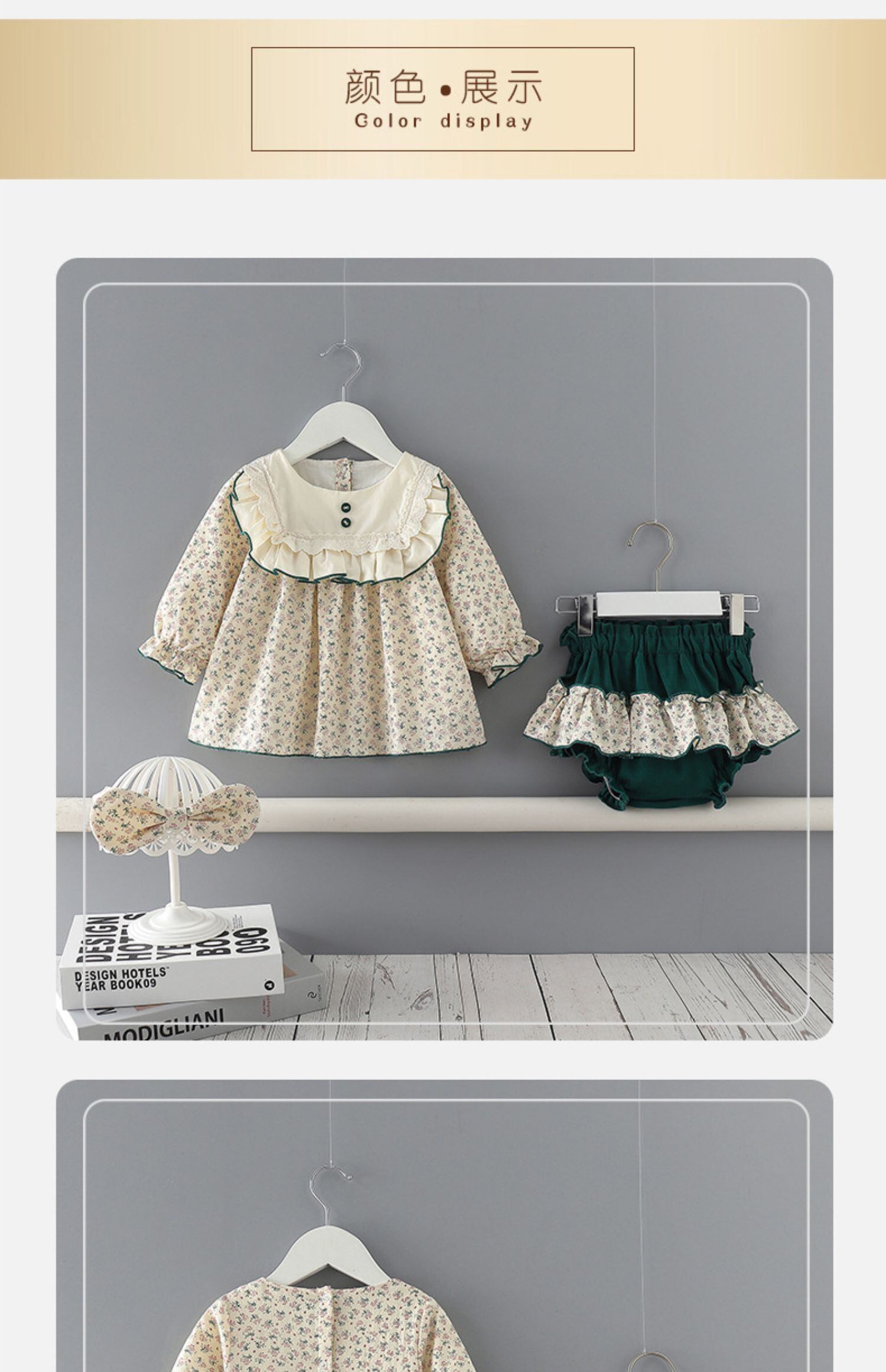 色:ベージュのスーツ+ヘアバンド