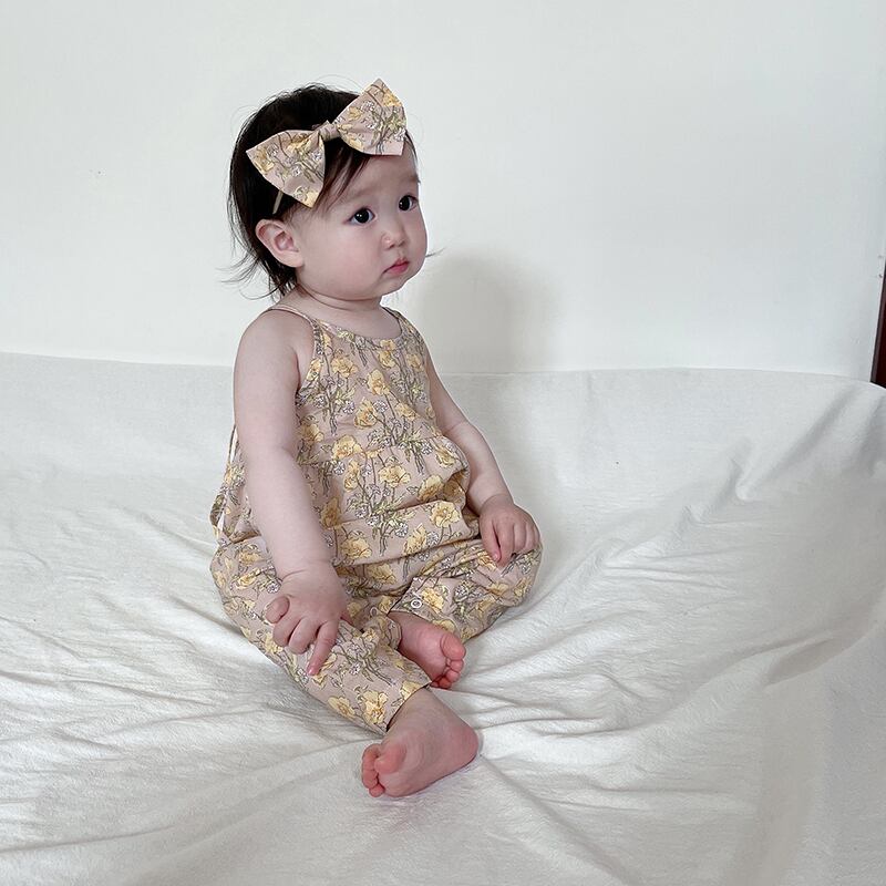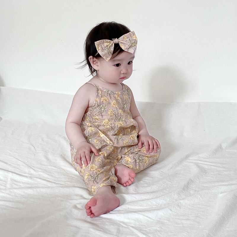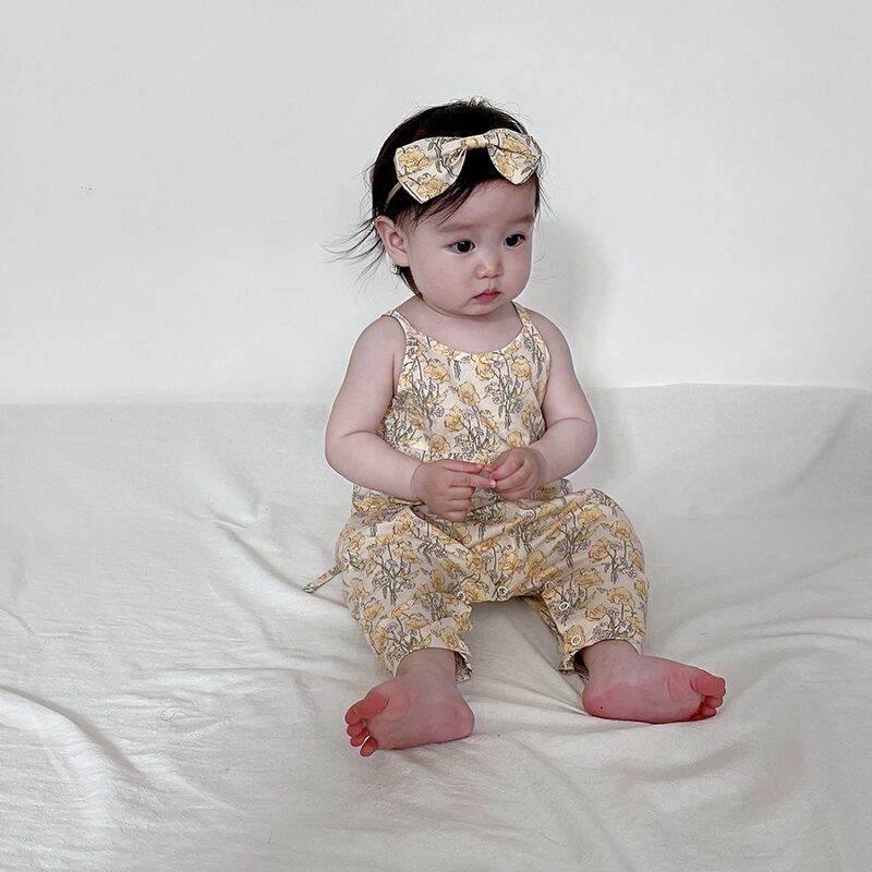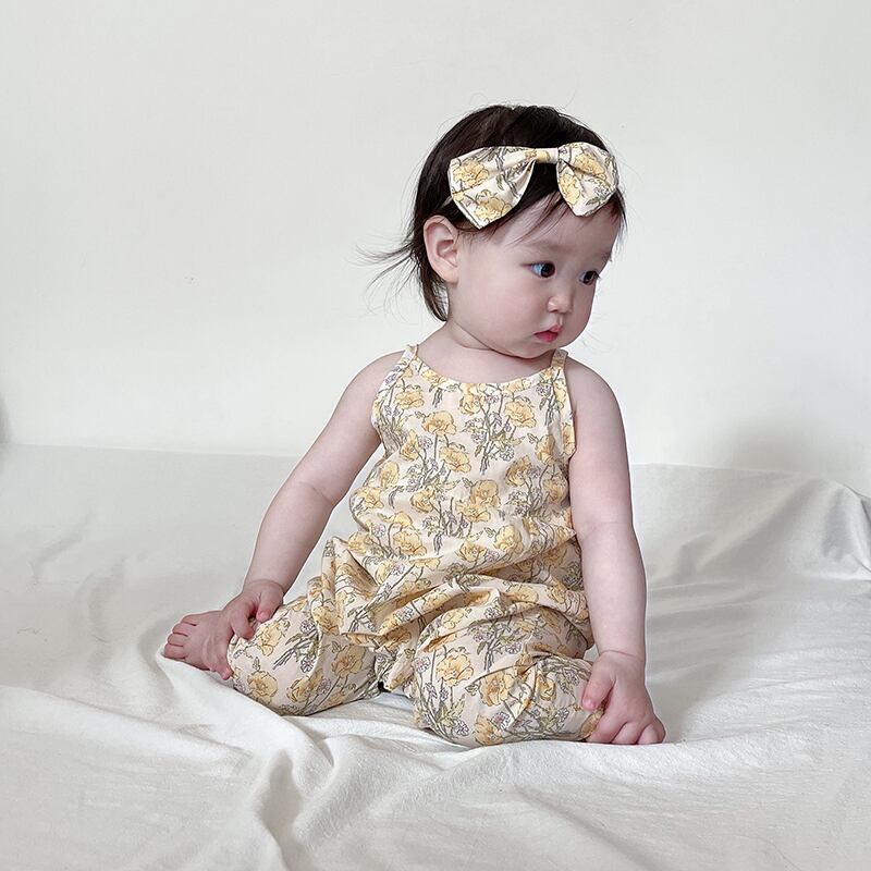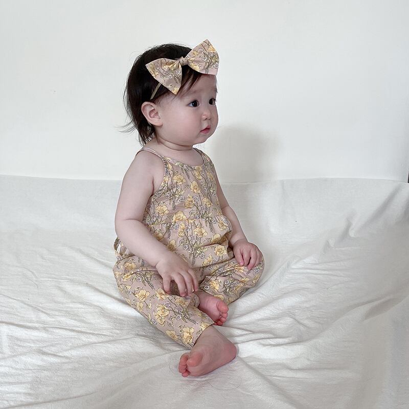 スタイルサマーフローラルロンパース オールインワン ヘアバンド コットン 夏物 花柄 5/26 mi0929195489361