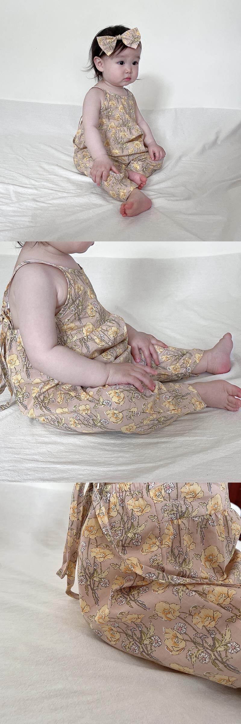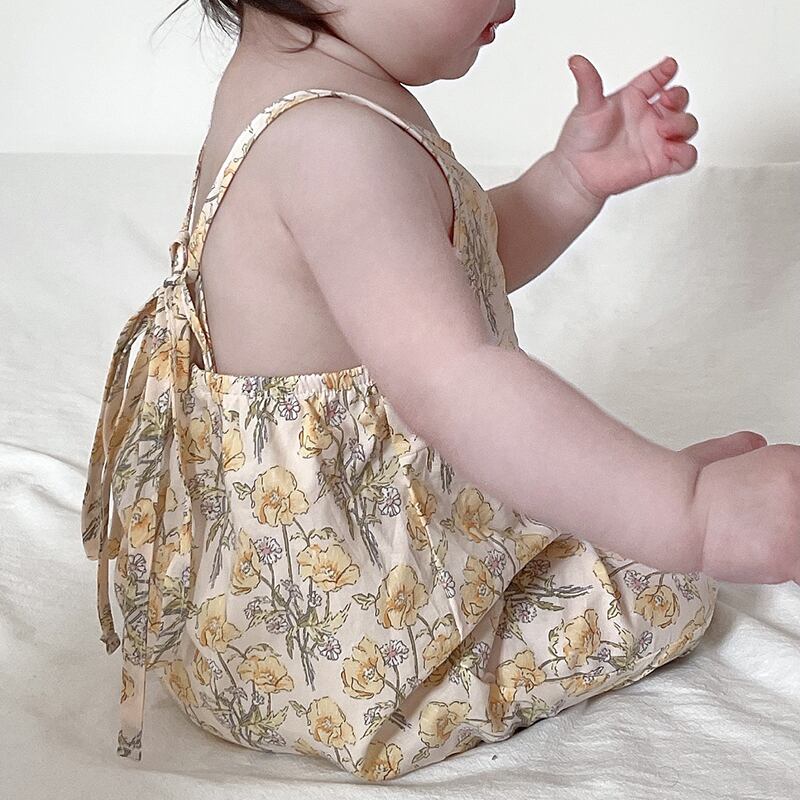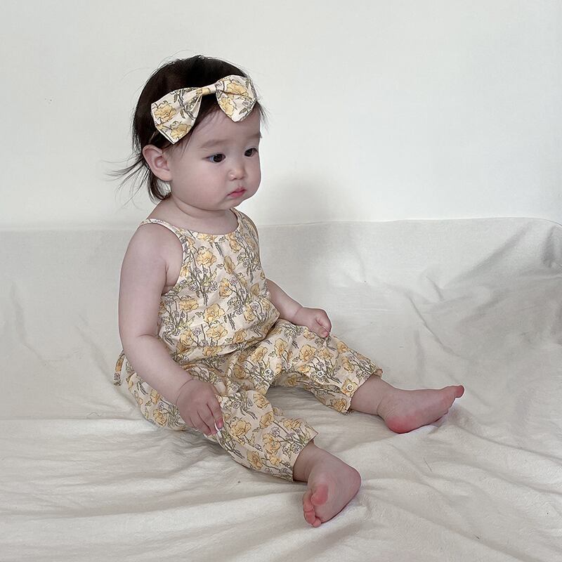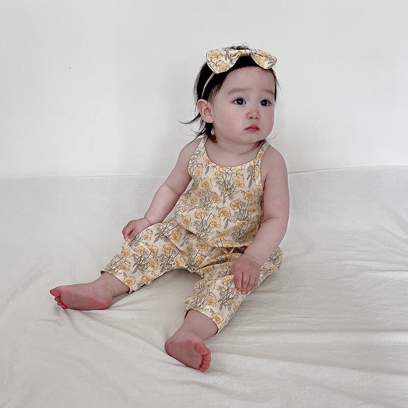 スタイルサマーフローラルロンパース オールインワン ヘアバンド コットン 夏物 花柄 5/26 mi0929195489361