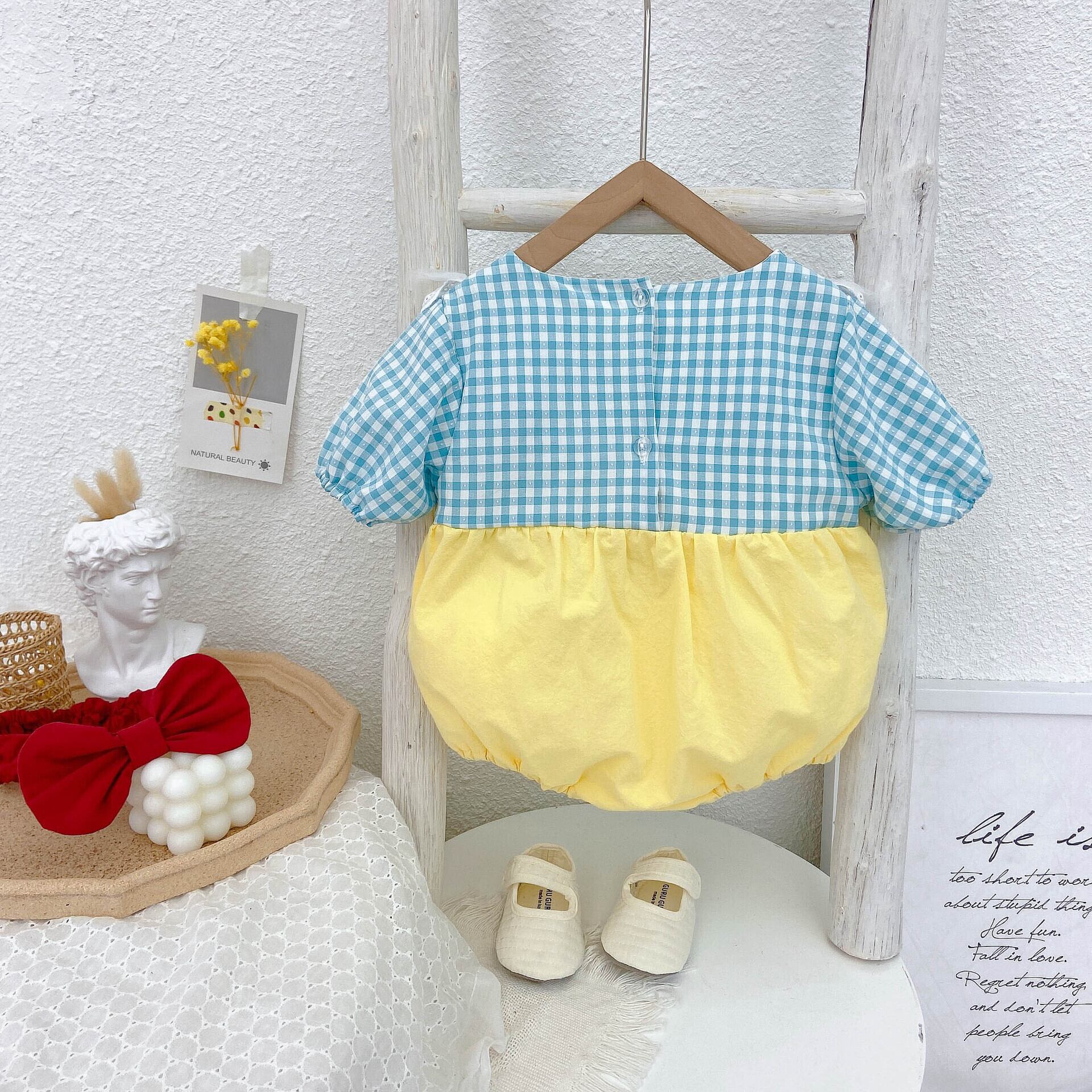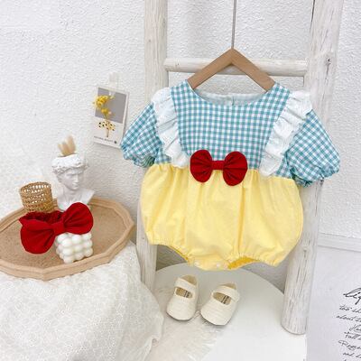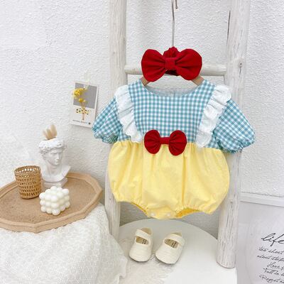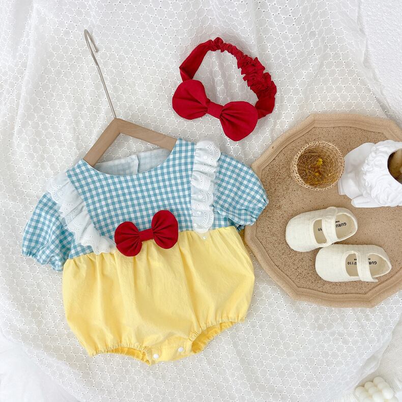 サマートライアングルロンパース オールインワン リボンワンピースヘアバンド 夏物 5/26 mi0962884579415