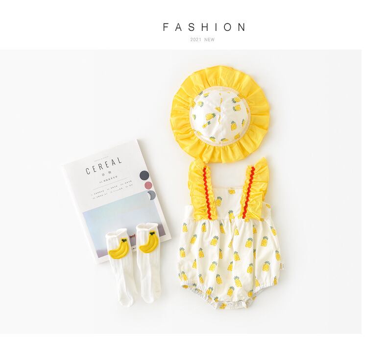 色:黄色いロンパースフリーハット(靴下なし),イエローロンパースハット+バナナソックス(全サイズ)