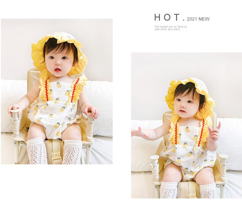 サマードレス レースノースリーブトライアングルロンパース オールインワン 帽子 夏物 5/26 mi0936104707650