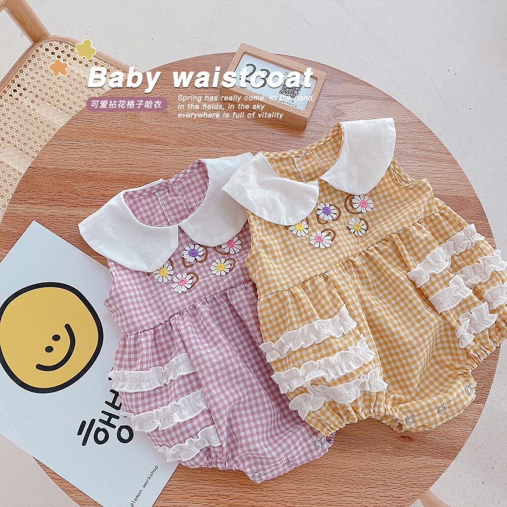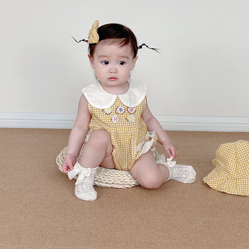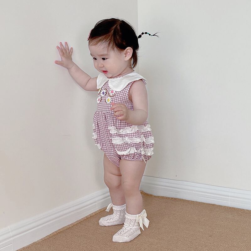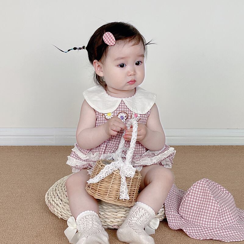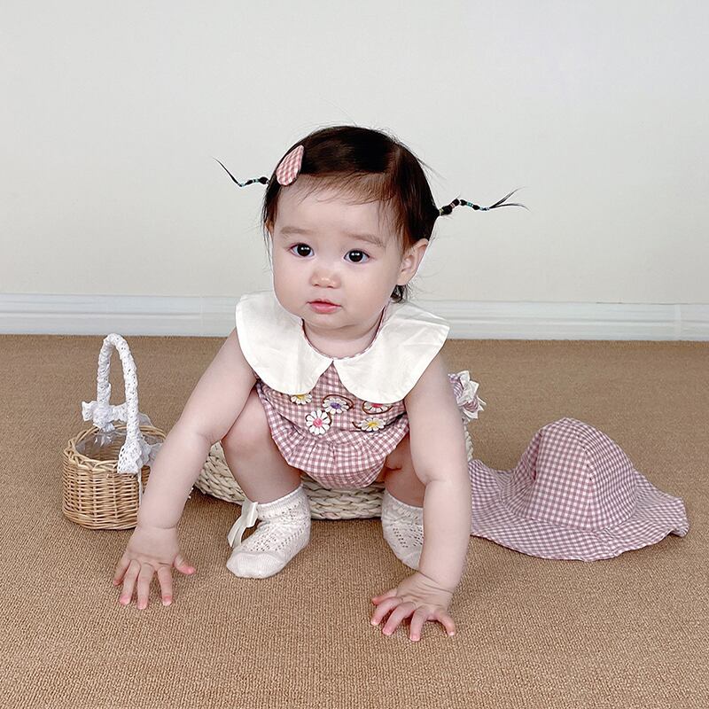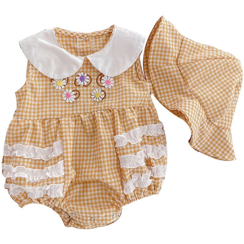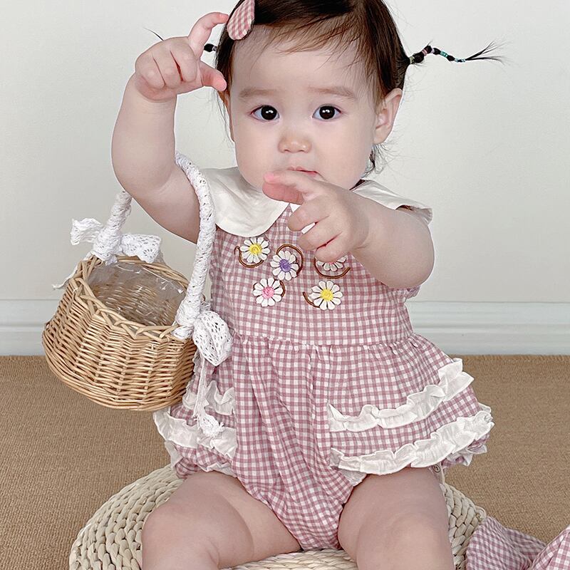 スタイル格子柄ロンパース オールインワン サマートライアングル レッド 帽子 刺繍 大人ガーリー スウィート キュート カジュアル 夏物 5/26 mi0982428308317
