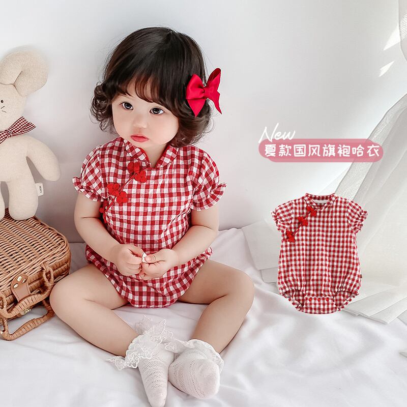 スタイルサマー格子柄ロンパース オールインワン トライアングル 夏物 5/26 mi0932519798415
