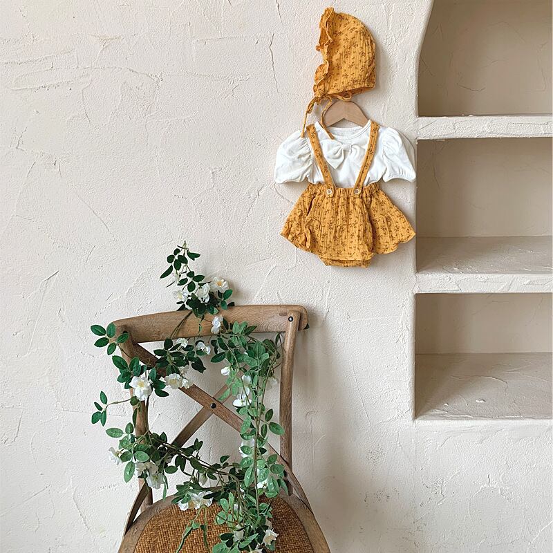 色:黄色のおならスカート+帽子,ホワイトボトミングシャツ,黄色のおならスカート+帽子+白いボトミングシャツ