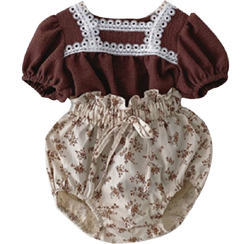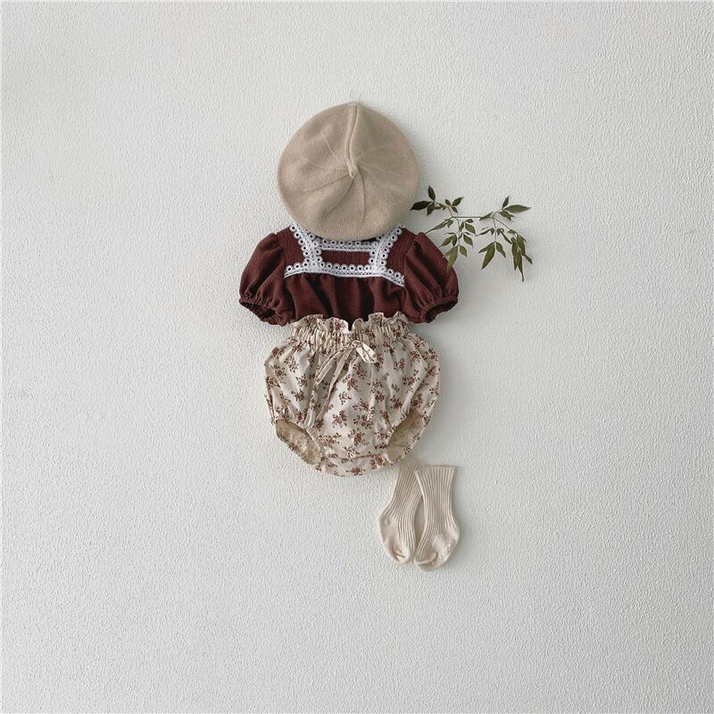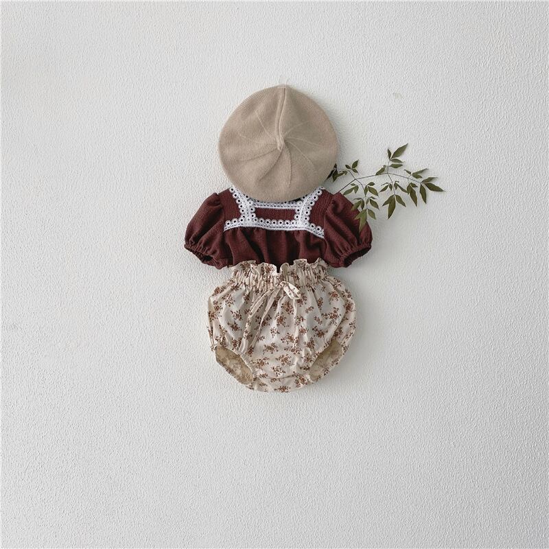 色:ブラウントップ+フローラルショーツセット