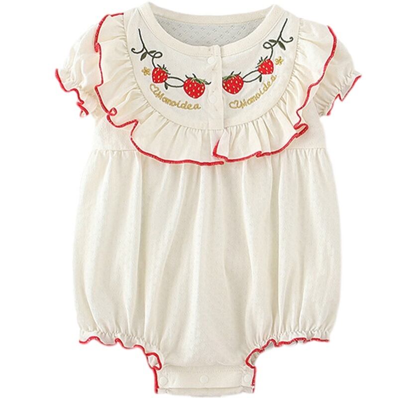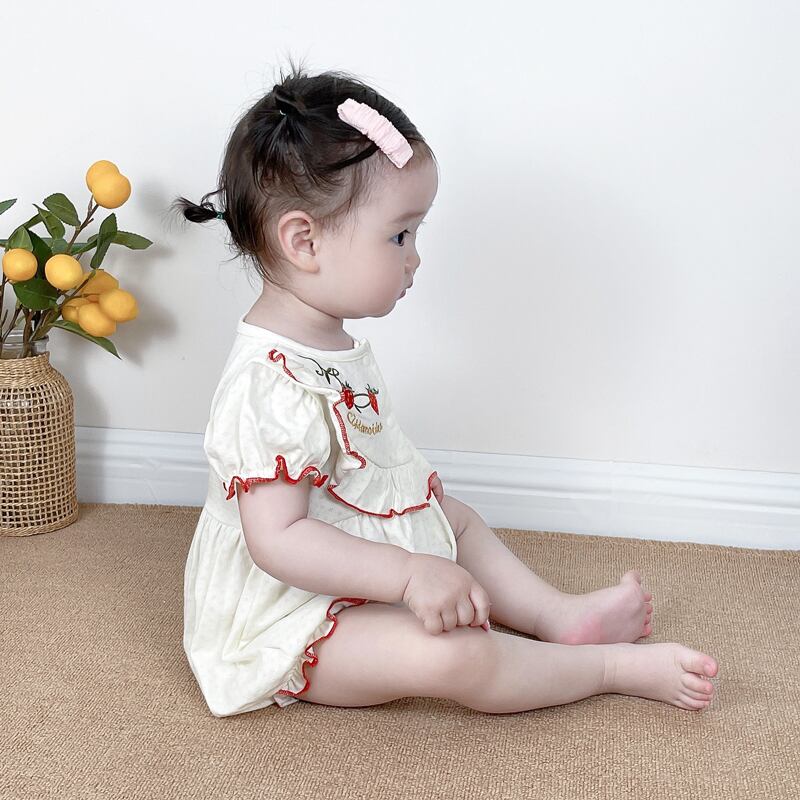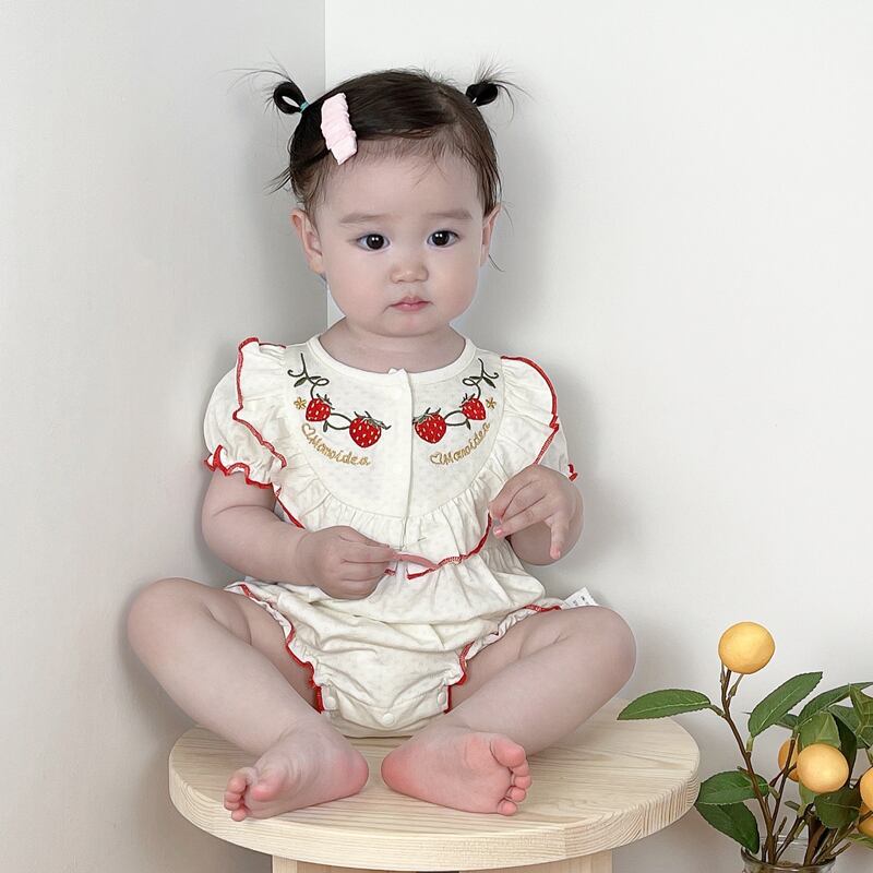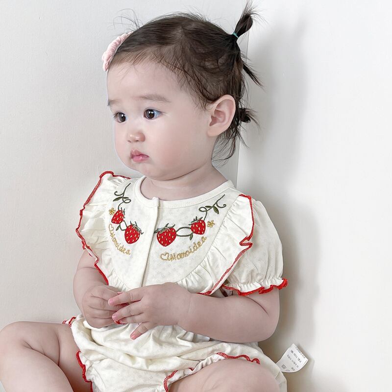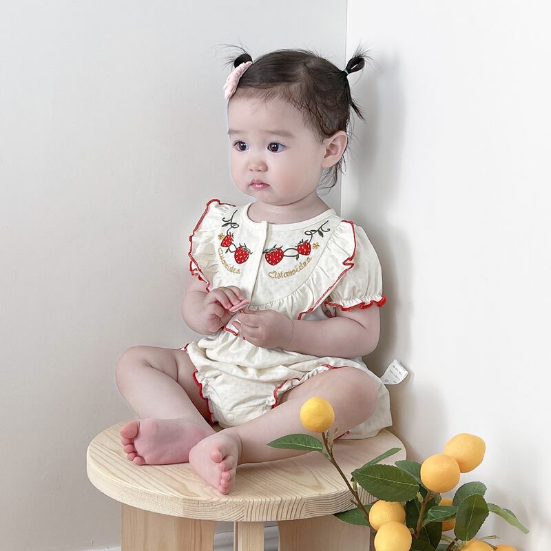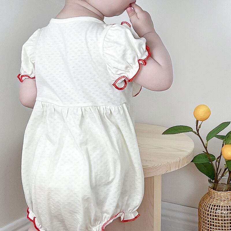 スタイルサマートライアングルロンパース オールインワン レッド 刺繍 大人ガーリー スウィート キュート カジュアル 夏物 7/7 mi0994811229901