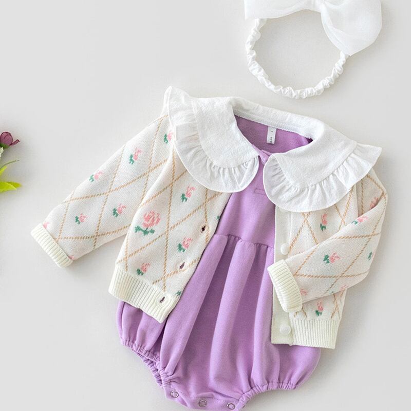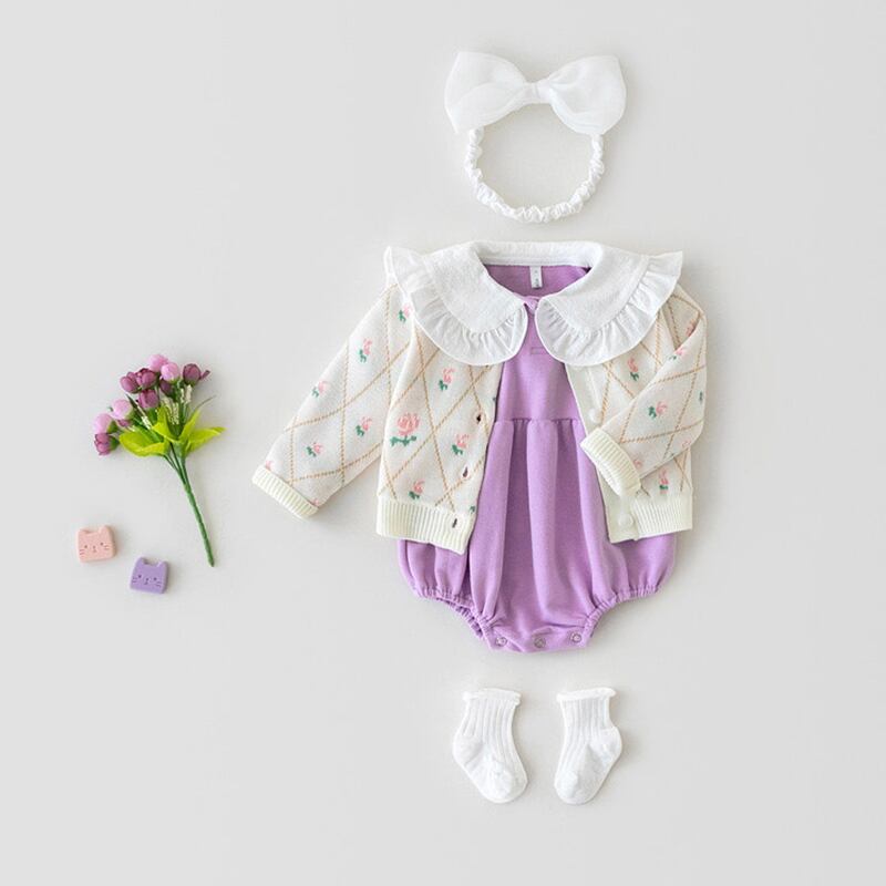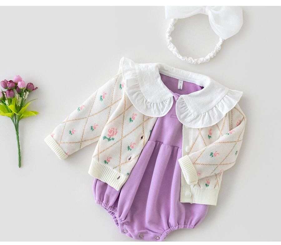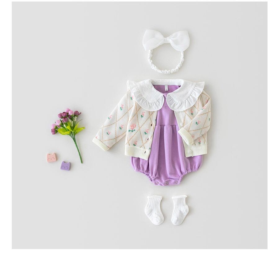 色:白いニットコート,ベージュのニットジャケット,黄色いローブ,紫のローブ,白衣+紫ロンパース,アプリコットコート+イエローロンパース