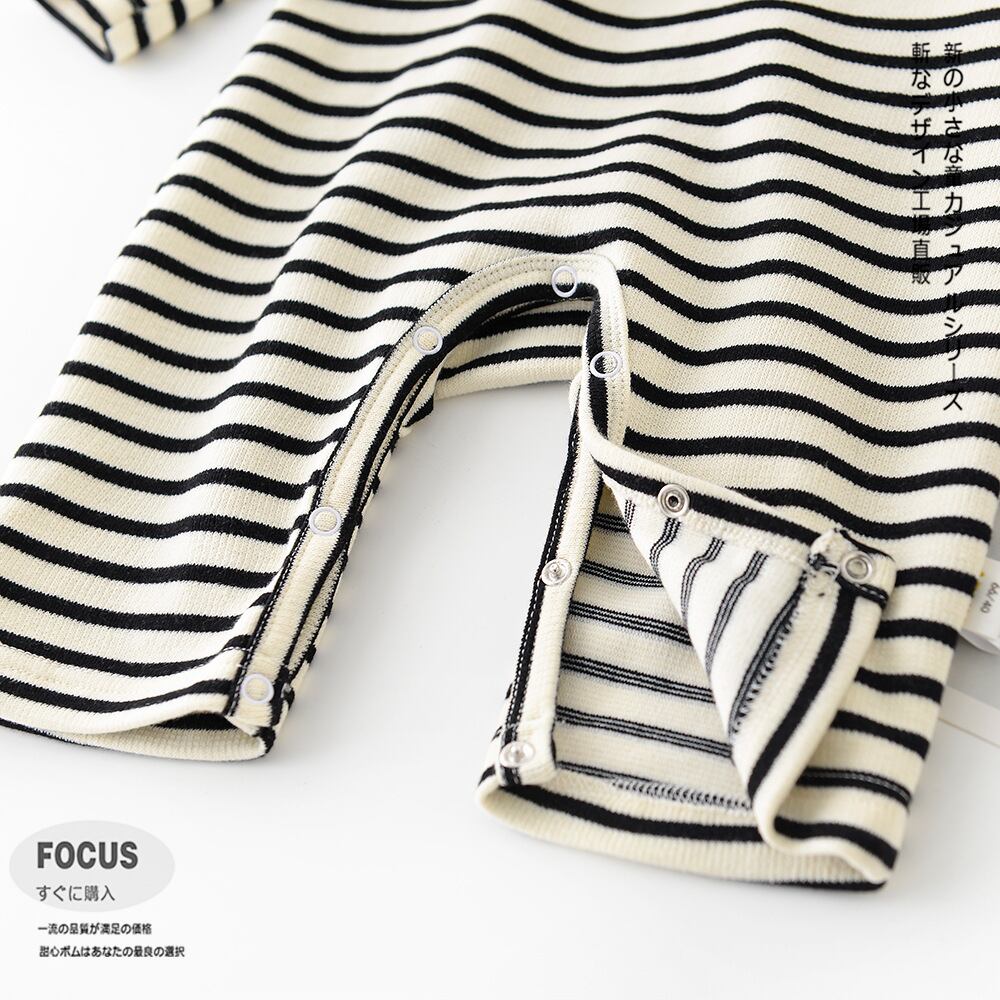 オータムストライプロンパース オールインワン ジャンプスーツ オールインワン 秋物 7/7 mi0916295069085