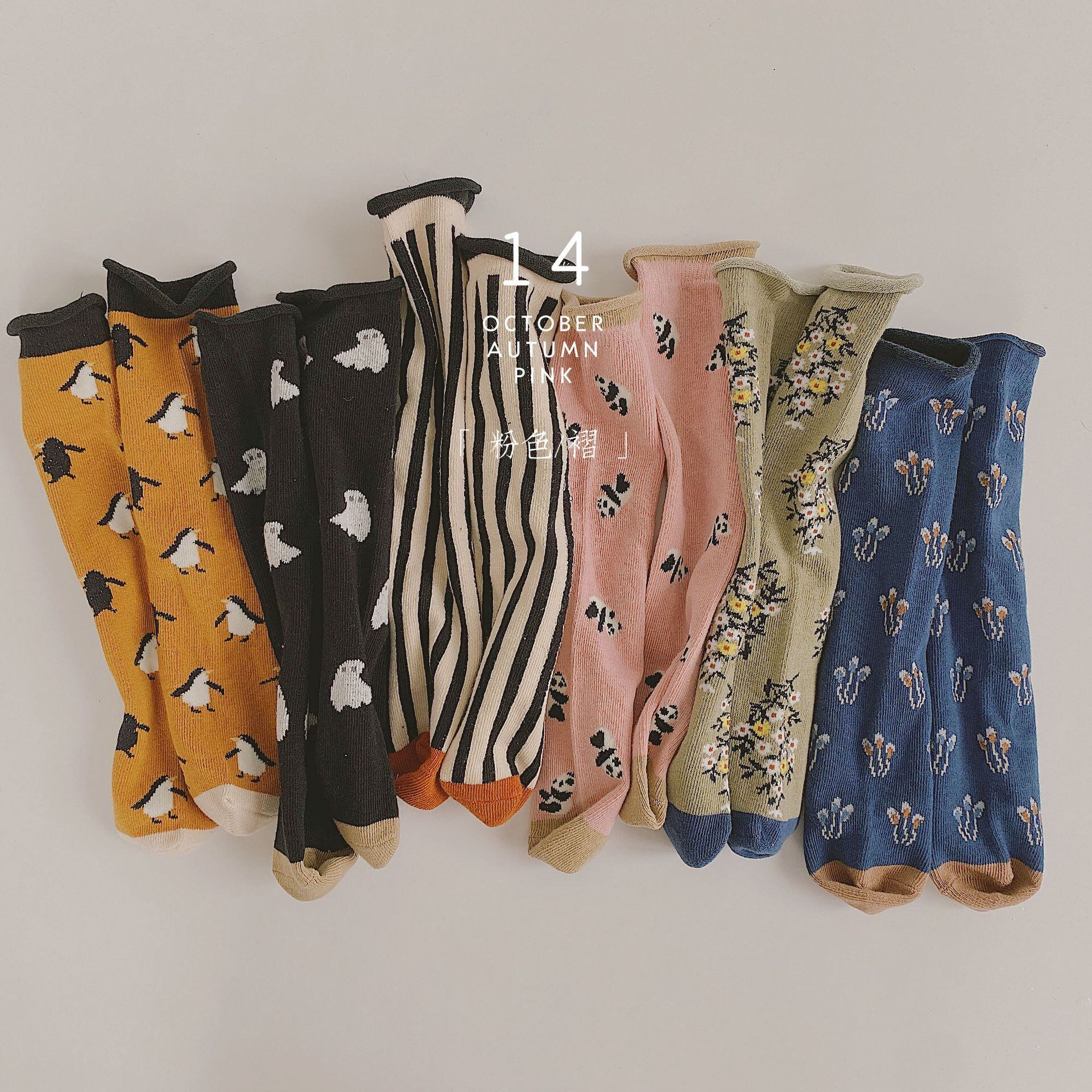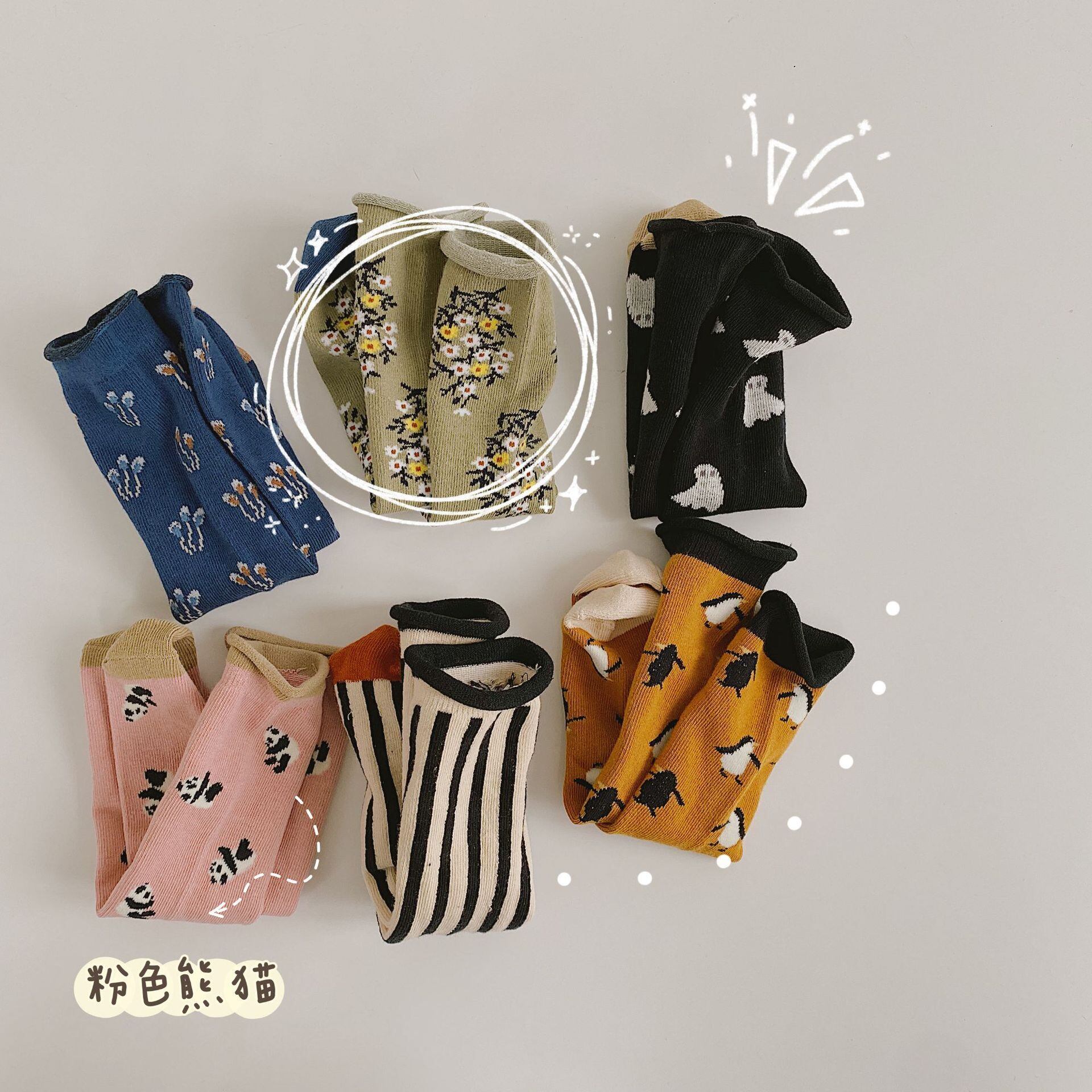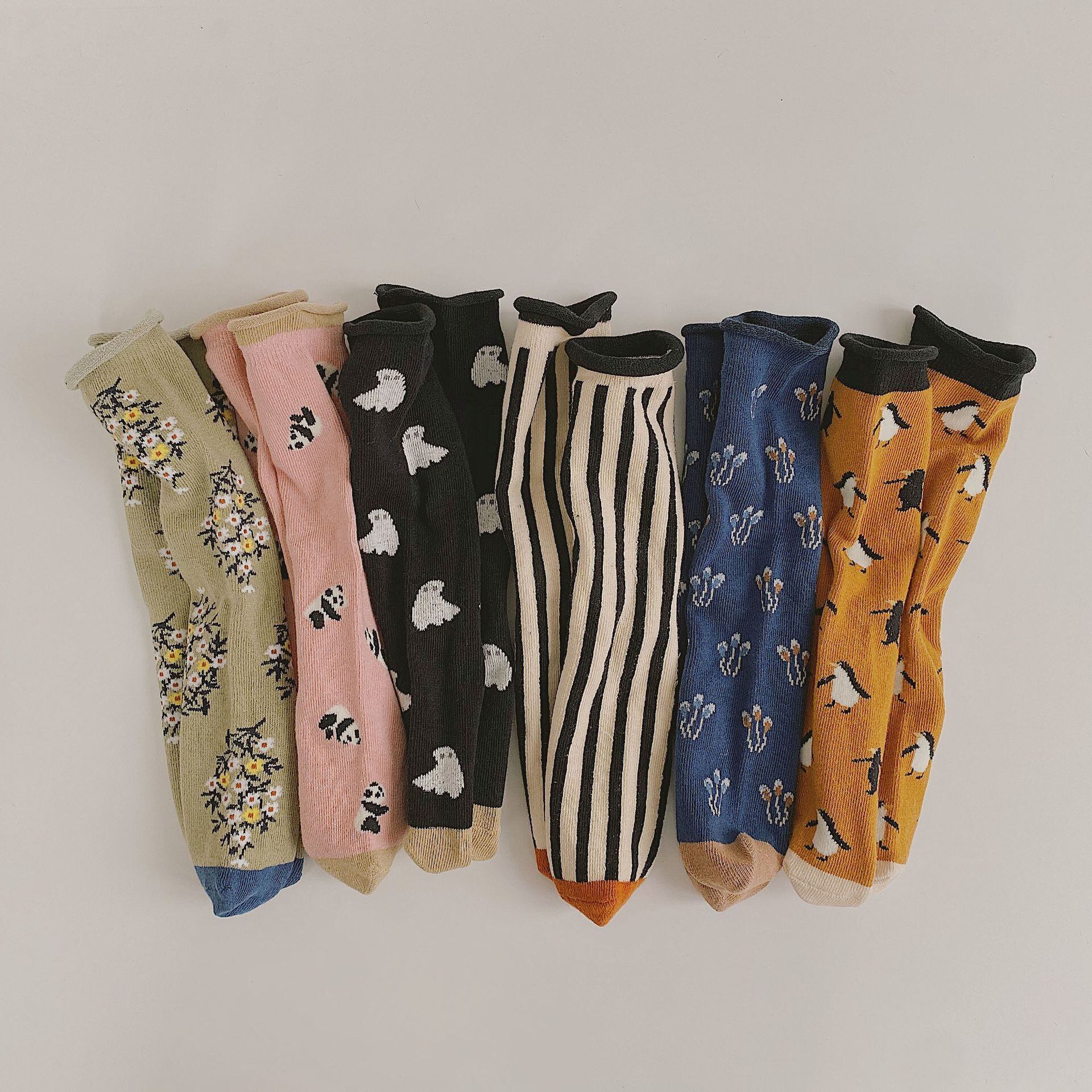 色:ウコンペンギン,小さな黒い幽霊,黒と白の縦線,ピンクパンダ,シアングレーフローラル,ダークブルーフローラル